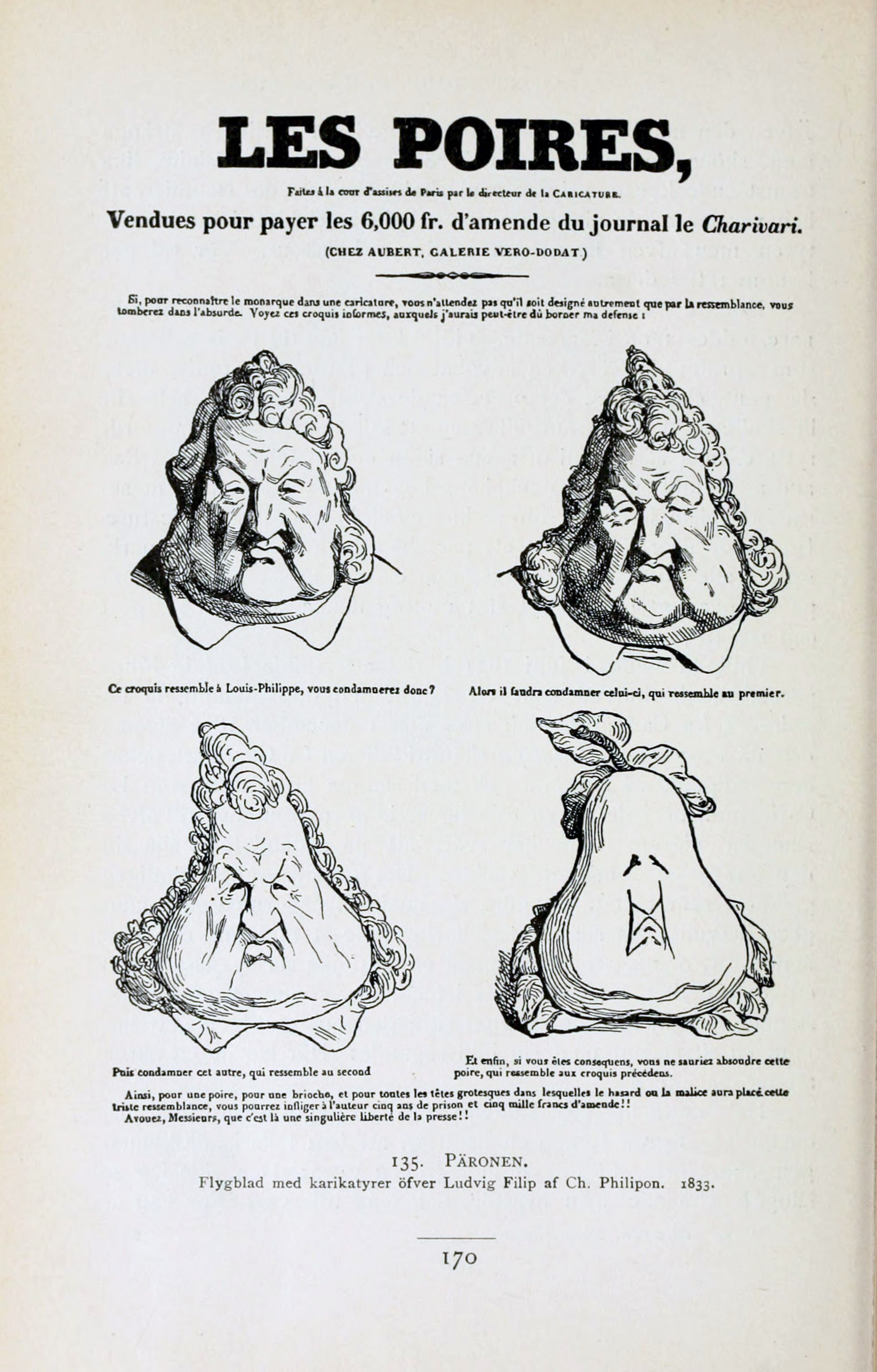 Flygblad med karikatyrer öfver Ludvig Filip af Ch. Philipon. 1833.
