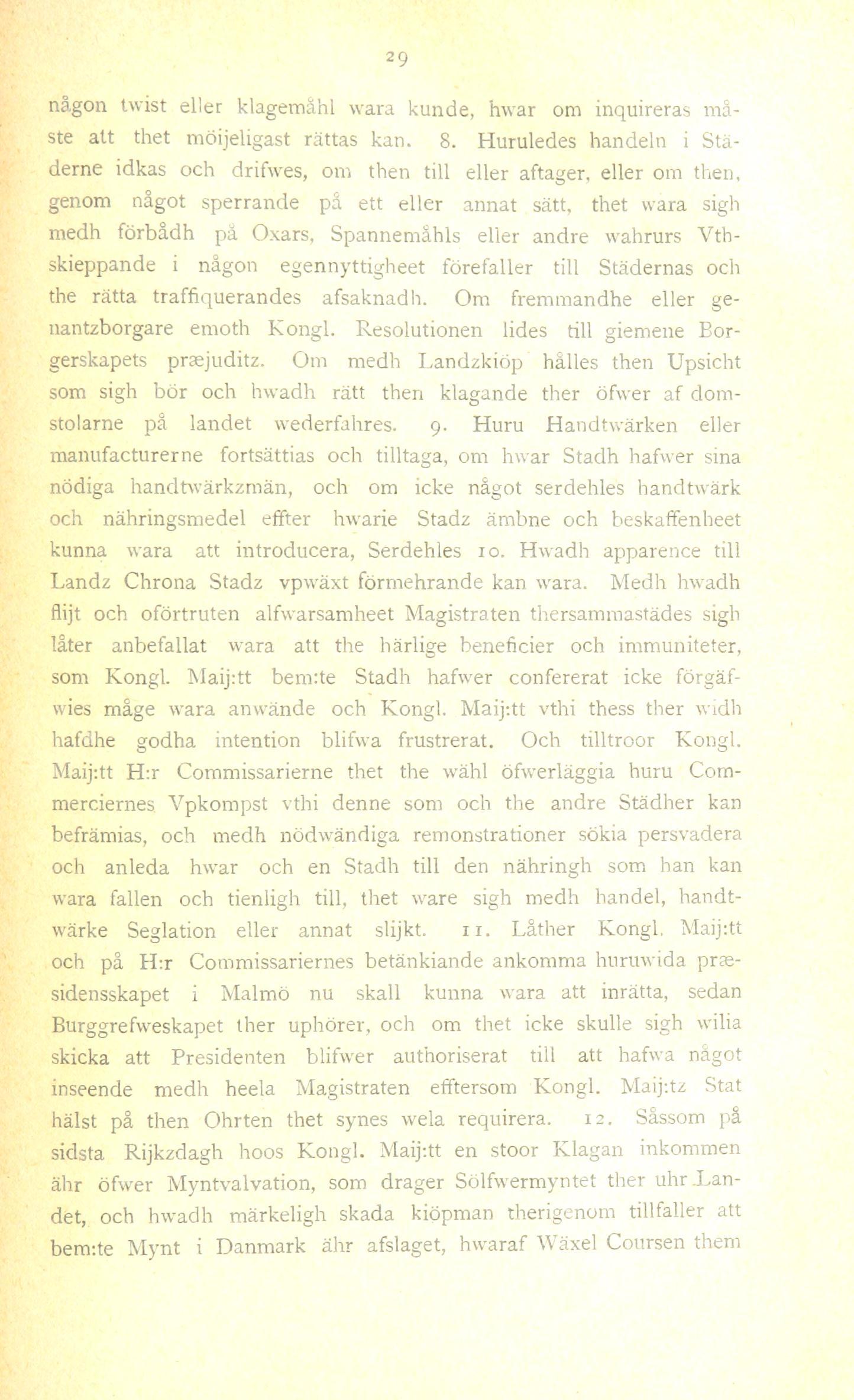 ste att thet möijeligast rättas kan. 8. Huruledes handeln i Stä-
