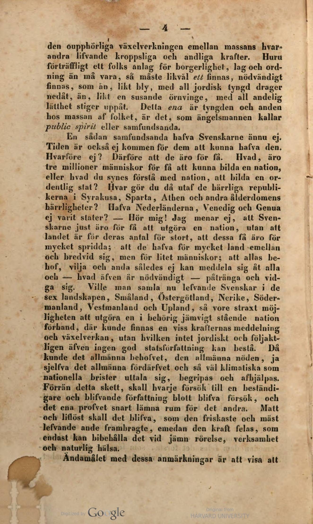 En sådan samfundsanda hafva Svenskarne ännu ej.