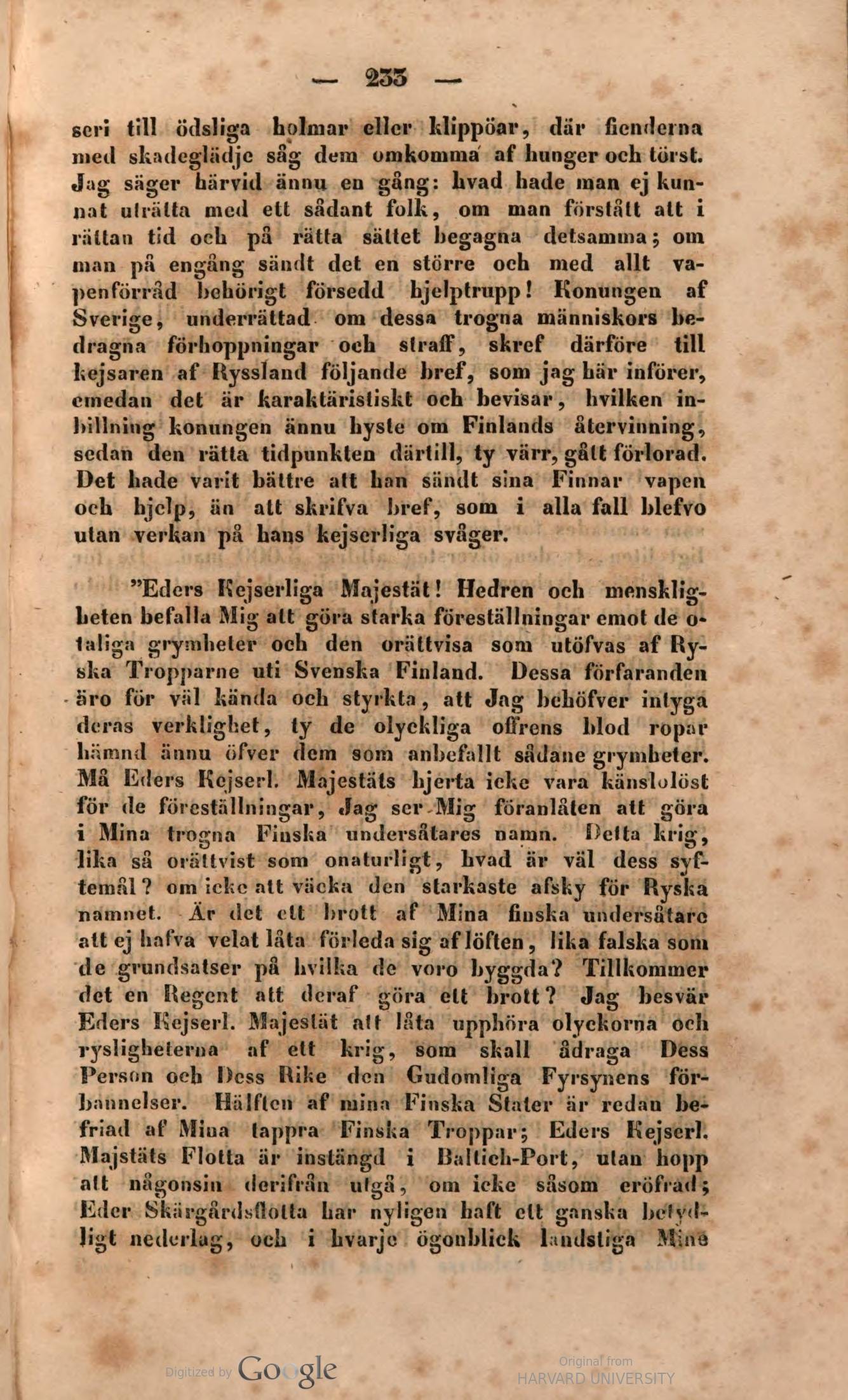 kejsaren af Ryssland följande bref, som jag bär införer,