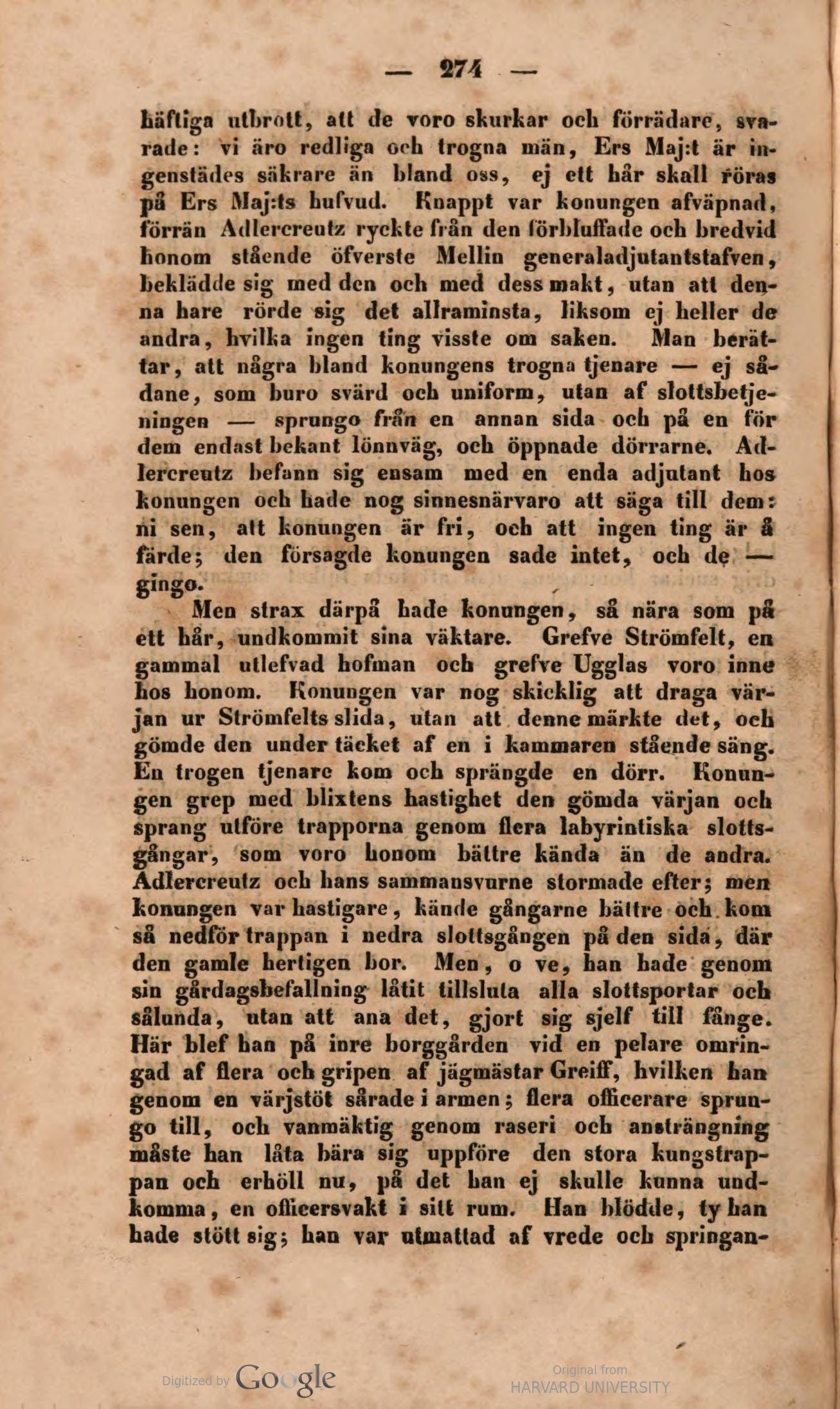 på Ers Maj:ts hufvud. Koappt var konungen afväpnad,