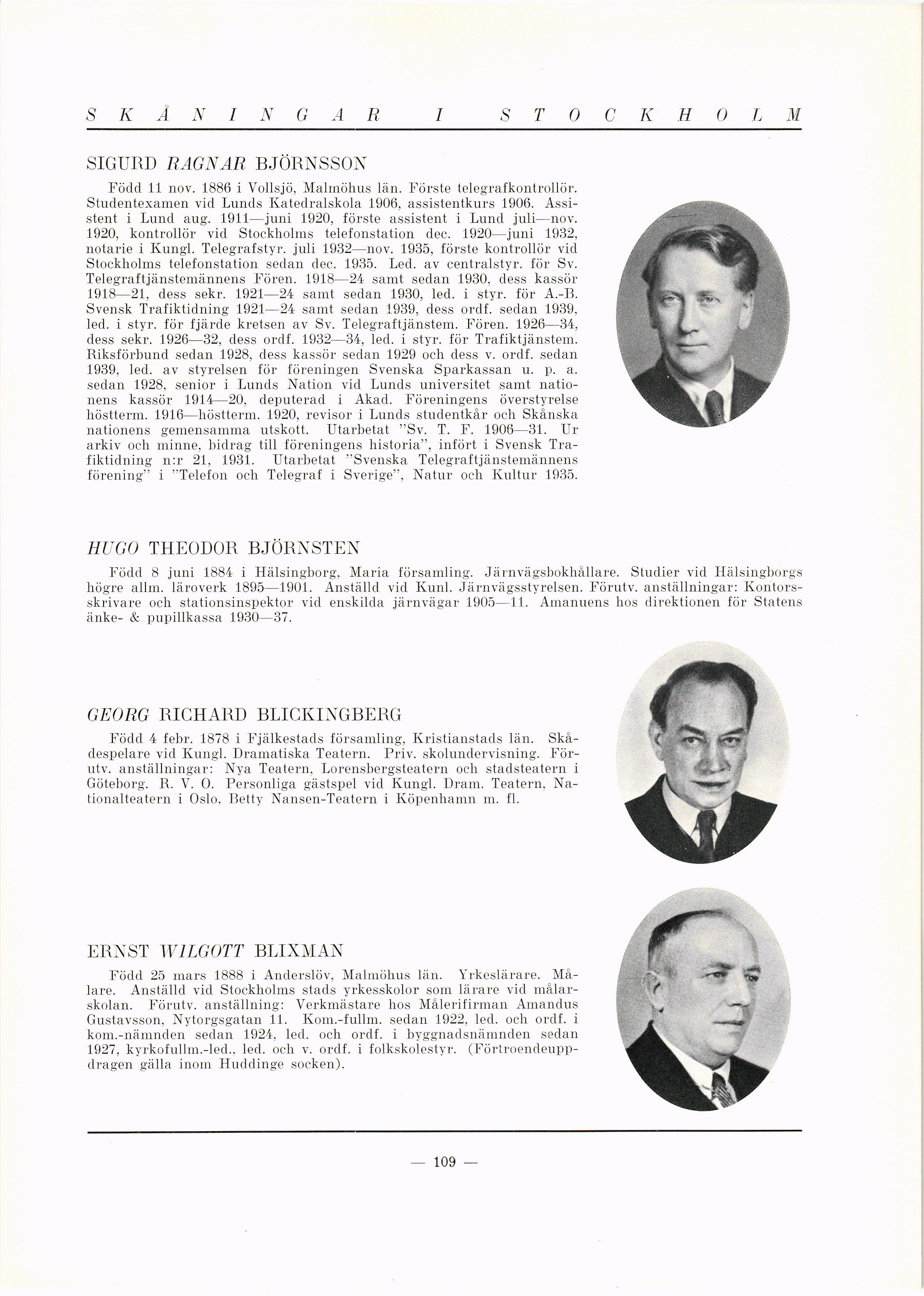 Född 11 nov. 1886 i Vollsjö, Malmöhus län. Förste telegrafkontrollör.