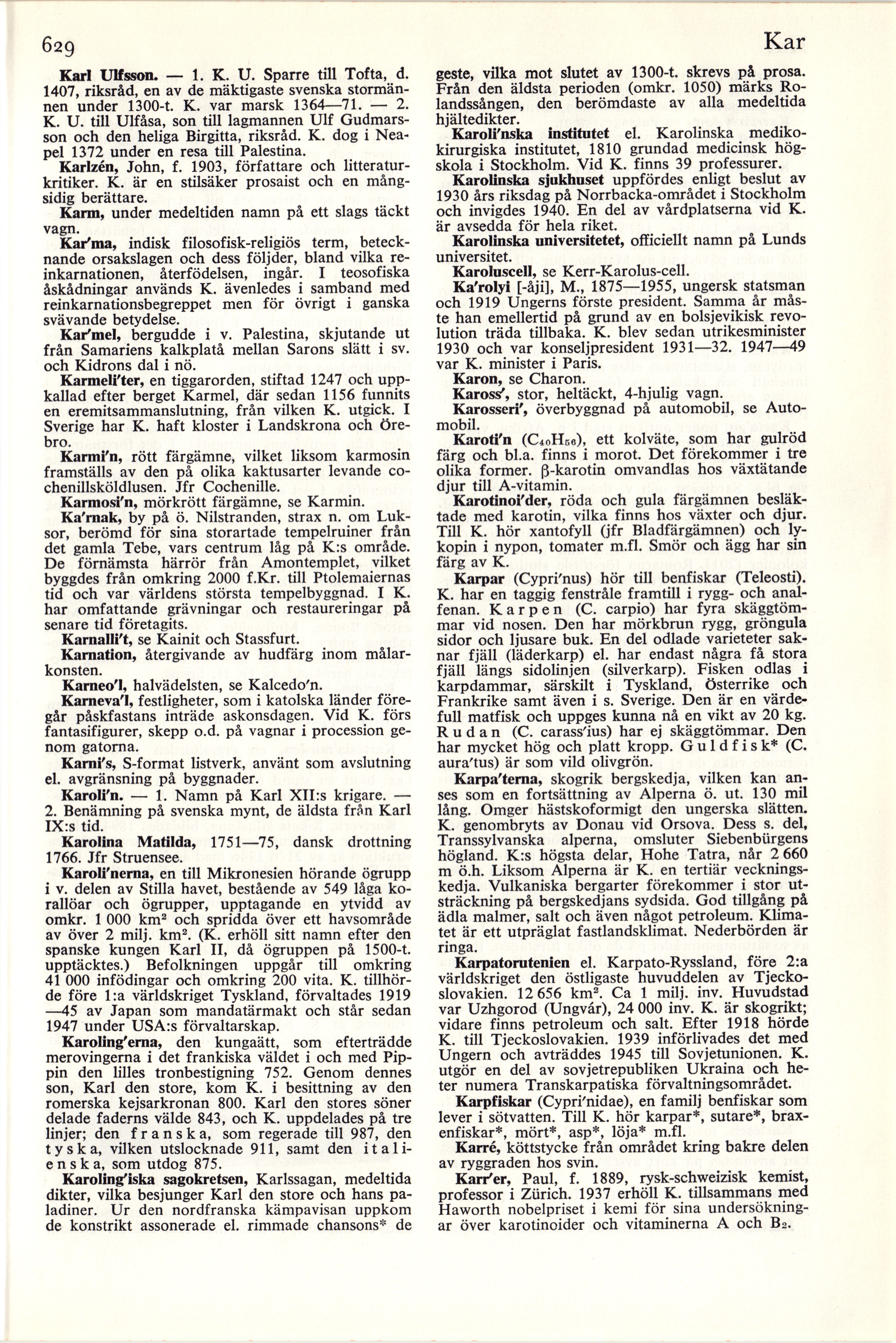 Karolfn. — 1. Namn på Karl XII:s krigare. —