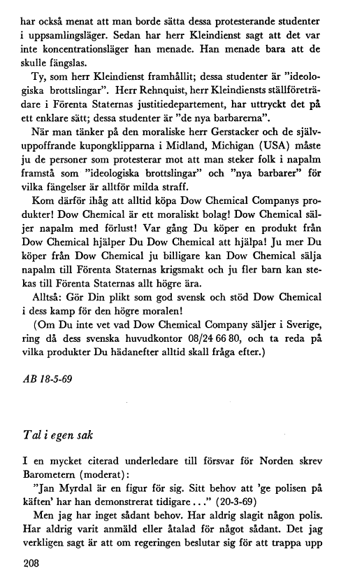 Note: This work was first published in 1968, less than 70 years ago. Jan Myrdal died in 2020, less than 70 years ago. Therefore, this work is protected by copyright, restricting your legal rights to reproduce it. However, you are welcome to view it on screen, as you do now. Read more about copyright.