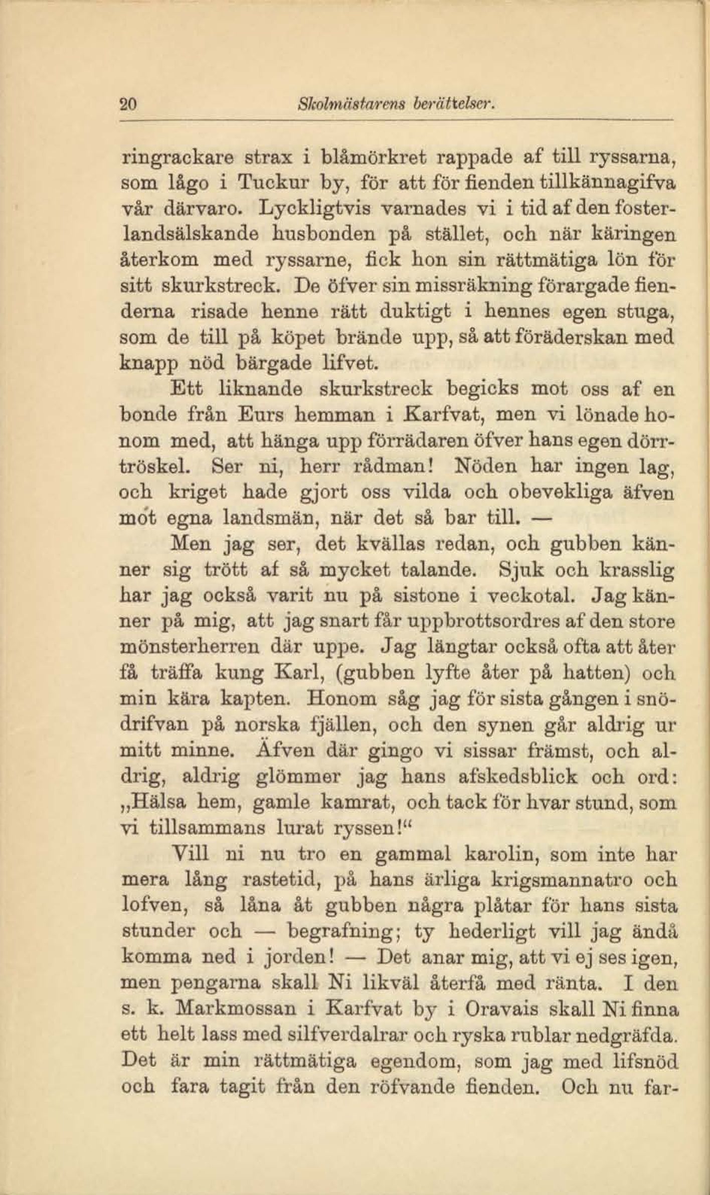 „Hälsa hem, gamle kamrat, och tack för hvar stund, som