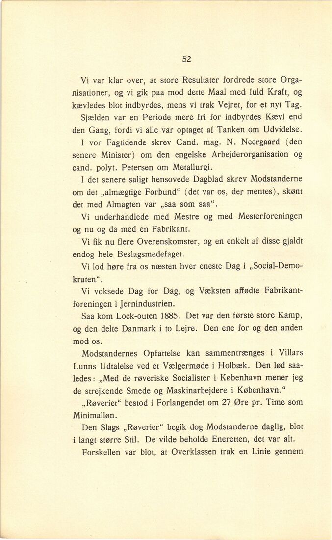 Saa kom Lock-outen 1885. Det var den første store Kamp,