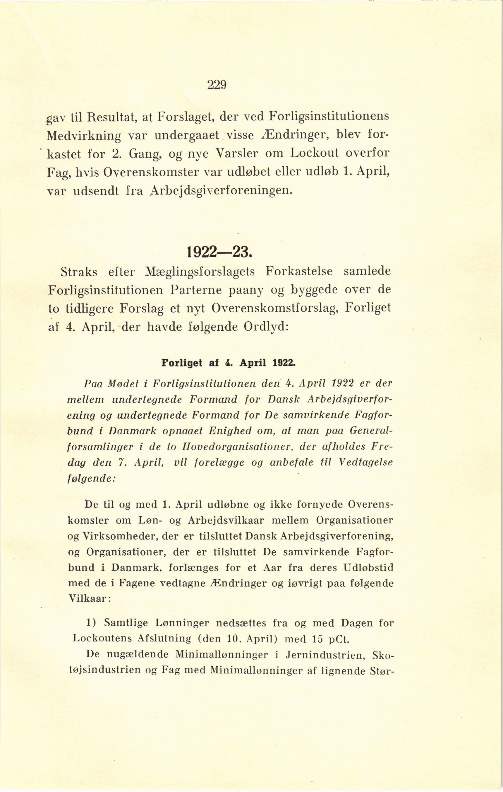 Paa Mødet i Forligsinstitutionen den i. April 1922 er der