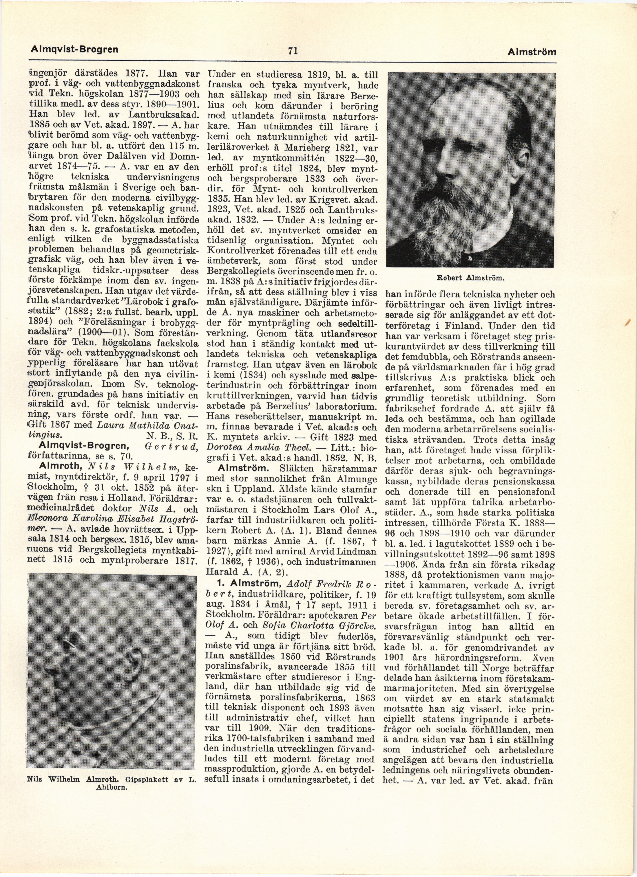 Full resolution (JPEG) - On this page / på denna sida - Almqvist, Pehr Vilhelm - Almqvist-Brogren, Gertrud, författarinna, se s. 70 - Almroth, Nils Wilhelm - Almström - 1. Almström, Robert