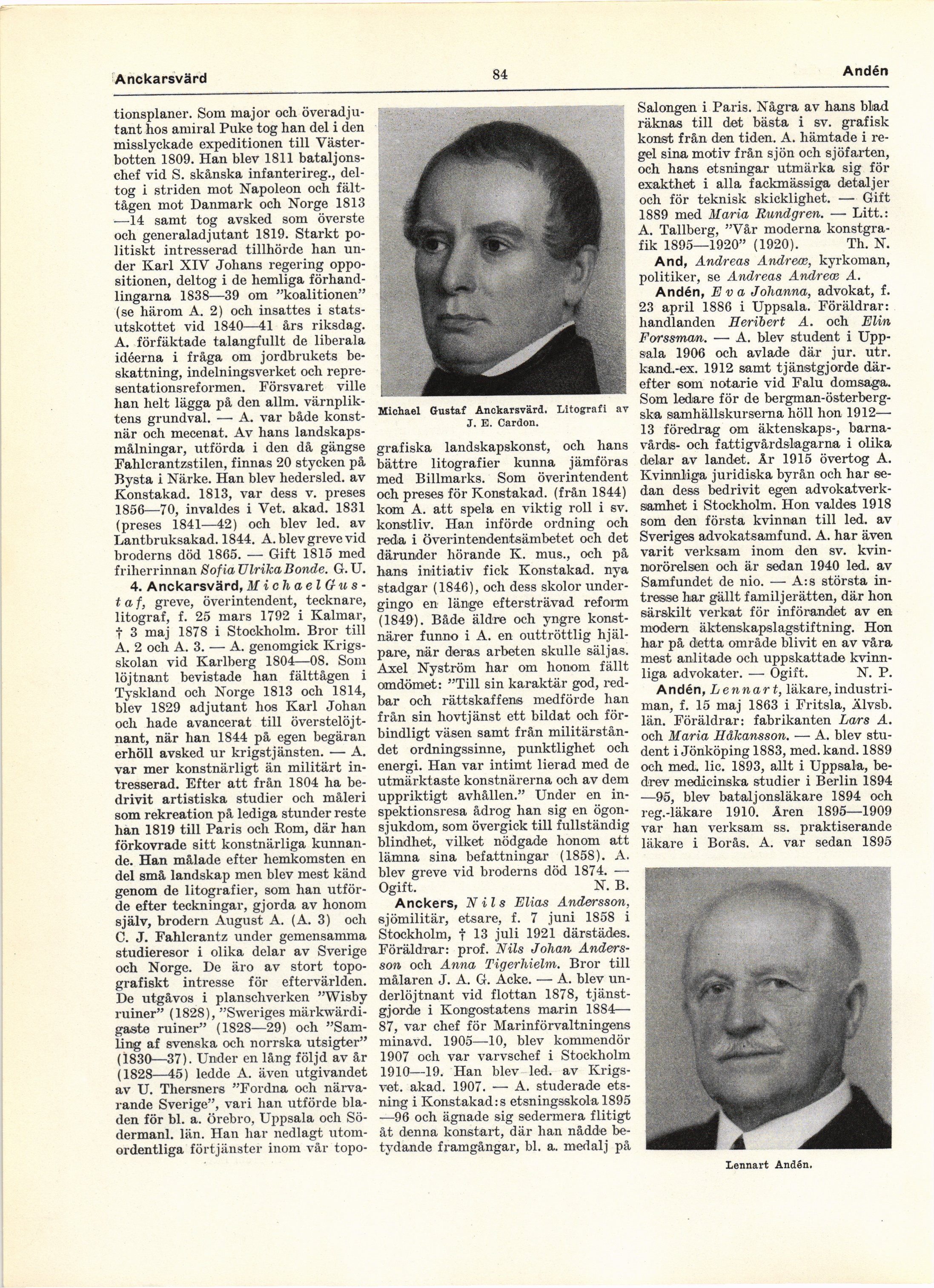 Full resolution (JPEG) - On this page / på denna sida - 3. Anckarsvärd, August - 4. Anckarsvärd, Michael Gustaf - Anckers, Nils - And, Andreas Andreæ, kyrkoman, politiker, se Andreas Andreæ A. - Andén, Eva - Andén, Lennart