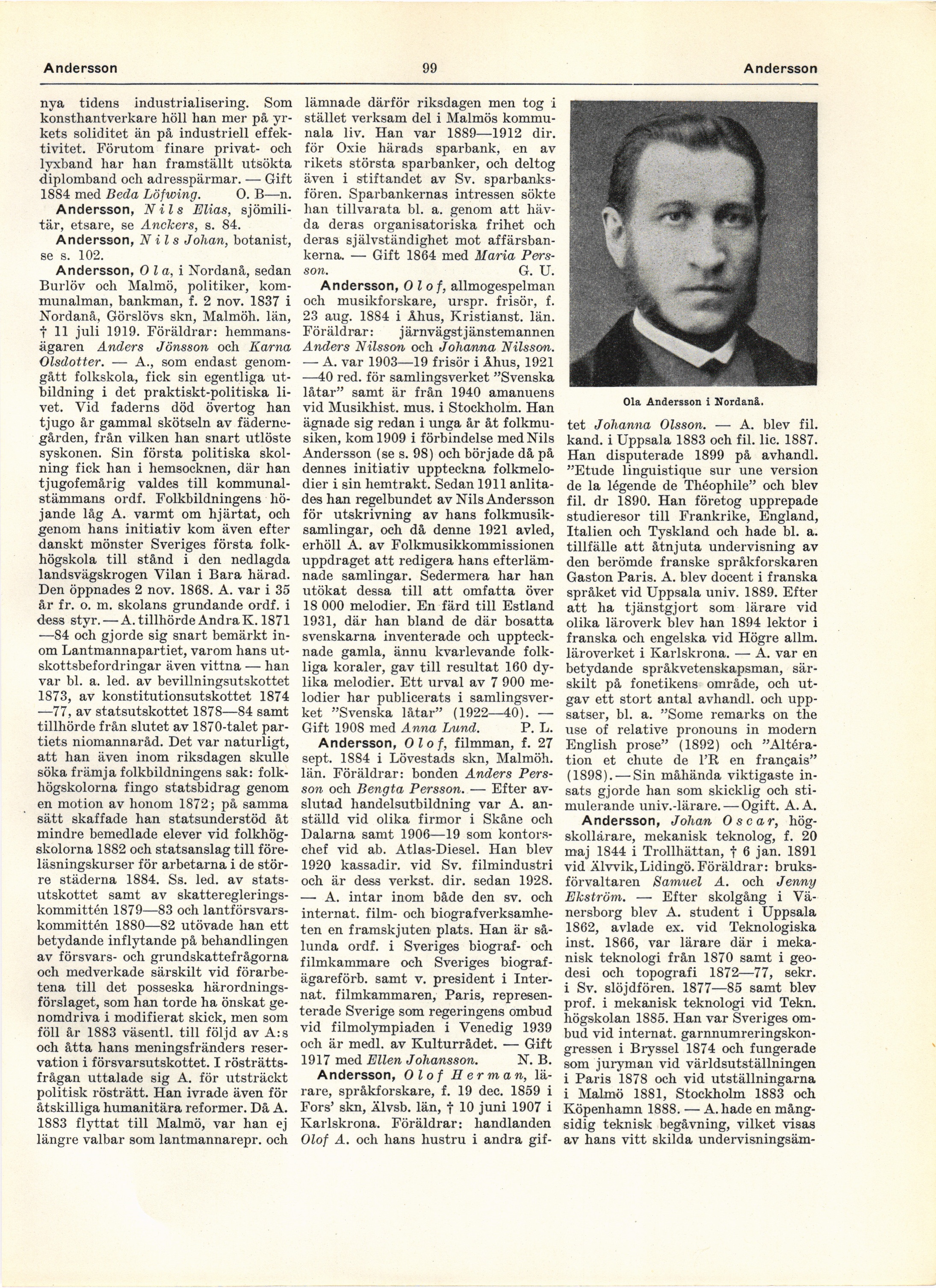 Full resolution (JPEG) - On this page / på denna sida - Andersson, Nils Bernhard - Andersson, Nils Elias, sjömilitär, etsare, se Anckers, s. 84 - Andersson, Nils Johan, botanist, se s. 102 - Andersson, Ola - Andersson, Olof - Andersson, Olof - Andersson, Olof Herman - Andersson, Oscar