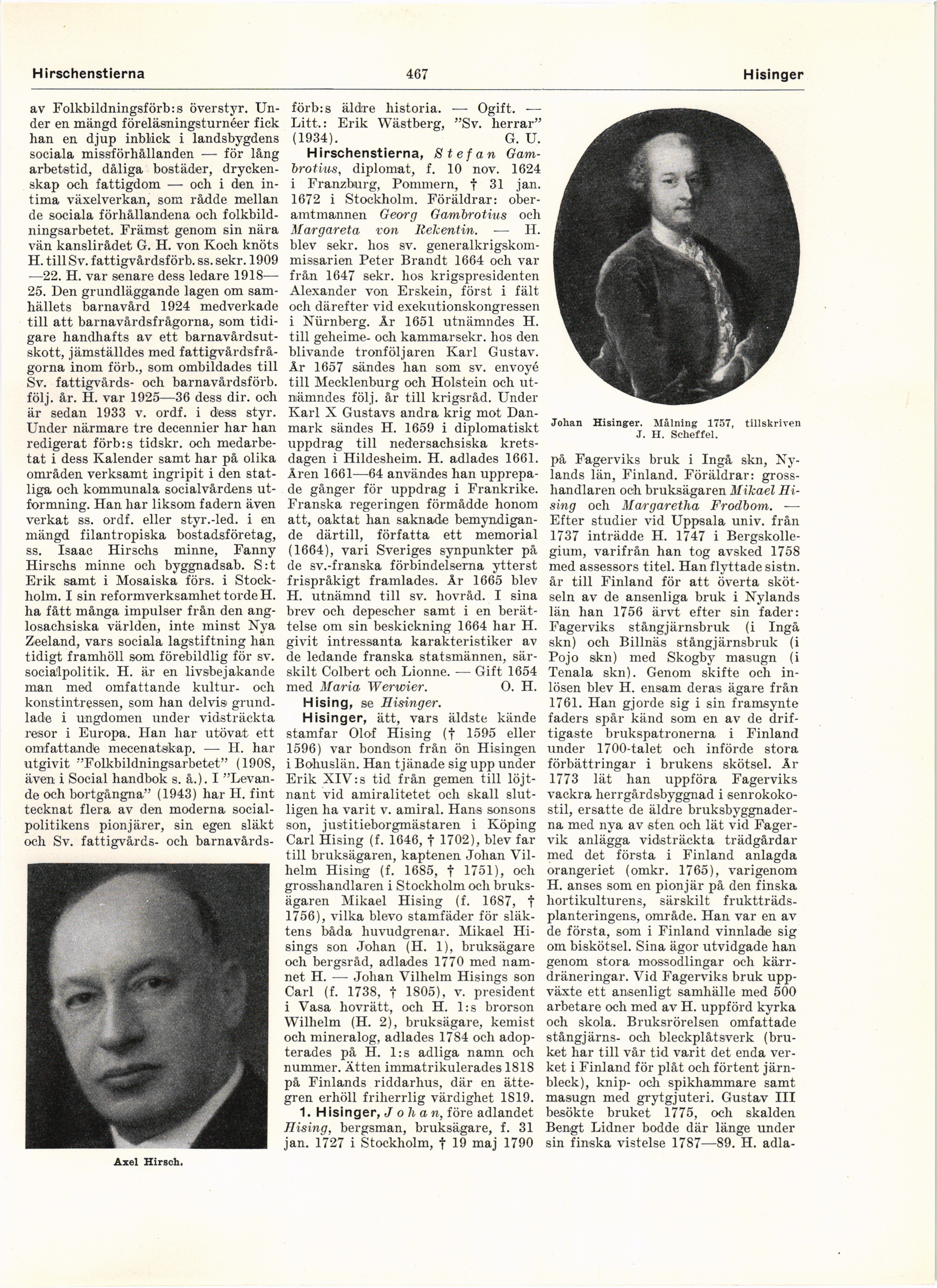 Full resolution (JPEG) - On this page / på denna sida - 7. Hirsch, Axel - Hirschenstierna, Stefan - Hising, se Hisinger - Hisinger, ätt - 1. Hisinger, Johan