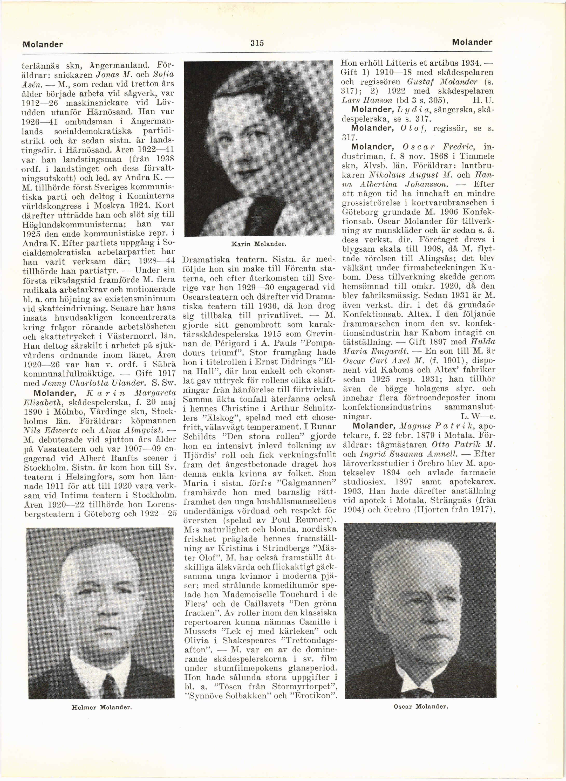 Full resolution (JPEG) - On this page / på denna sida - Molander, Helmer - Molander, Karin - Molander, Lydia, sångerska, skådespelerska, se s. 317 - Molander, Olof, regissör, se s. 317 - Molander, Oscar - Molader, Patrik