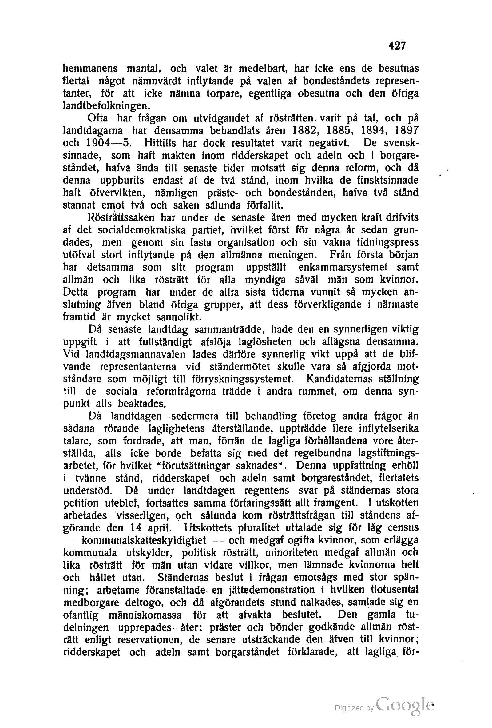 arbetades visserligen, och sålunda kom rösträttsfrågan till ståndens