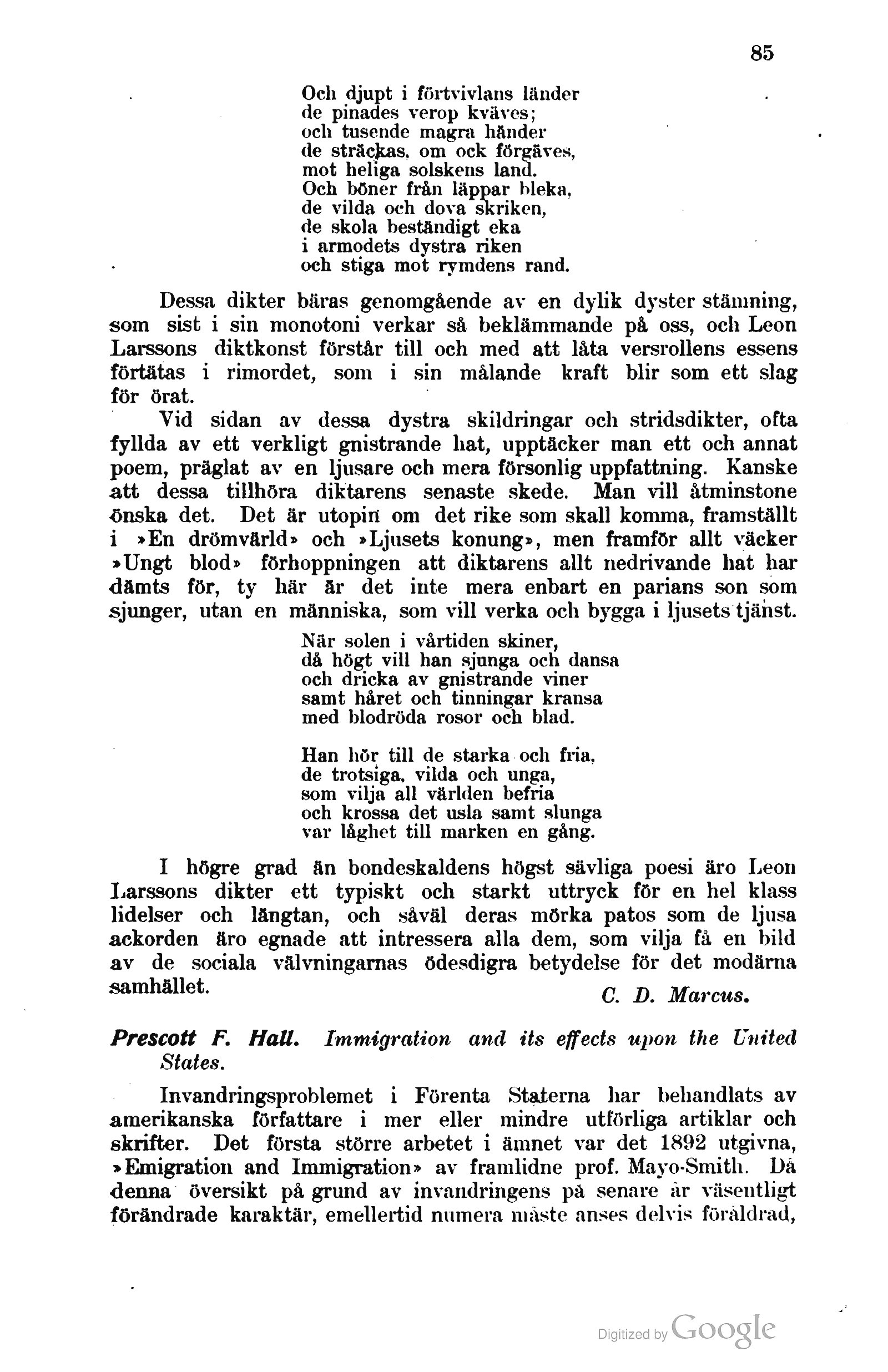 »Emigration and Immigration» av framlidne prof. Mayo Smith. Då
