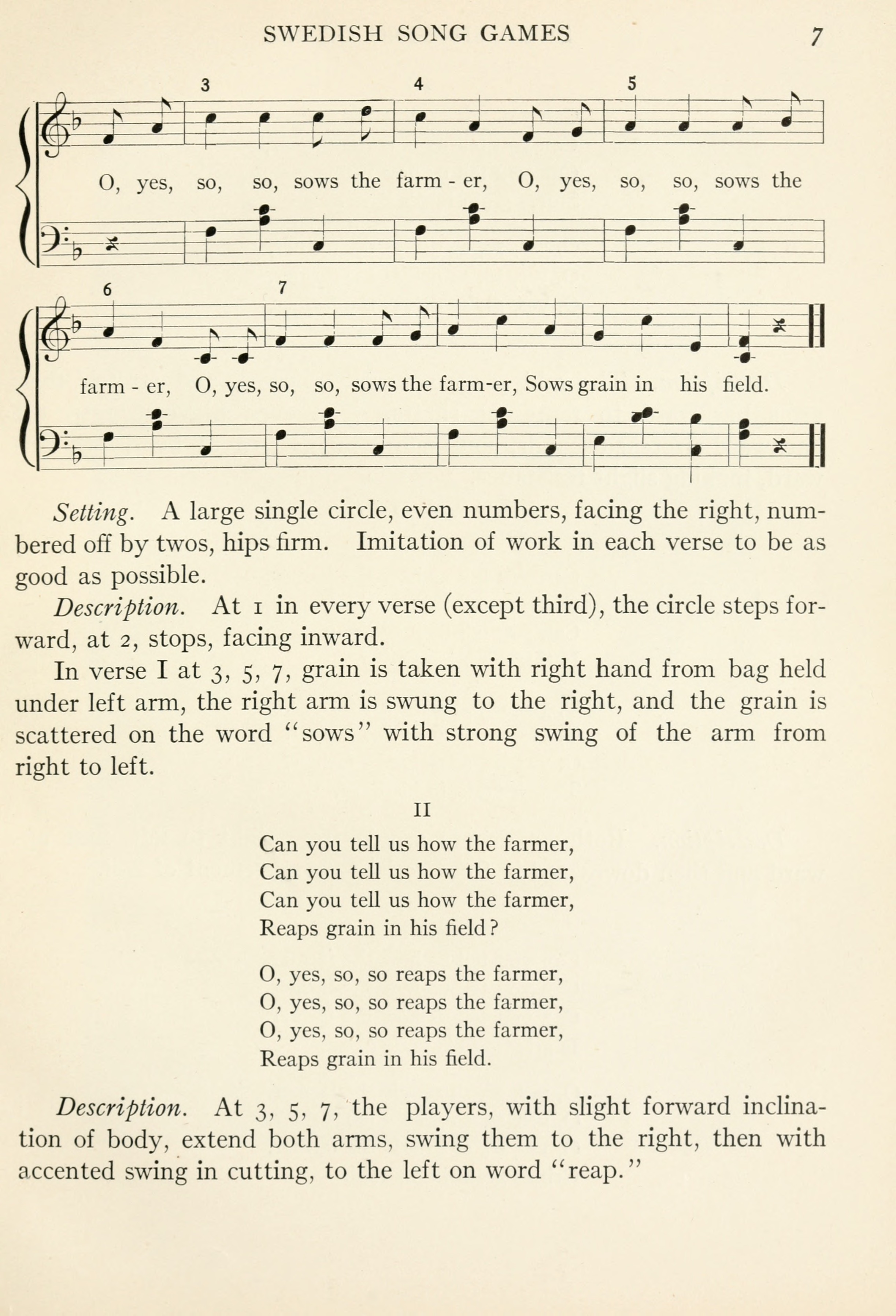 farm - er, O, yes, so, so, sows the farm-er, Sows grain in his field.