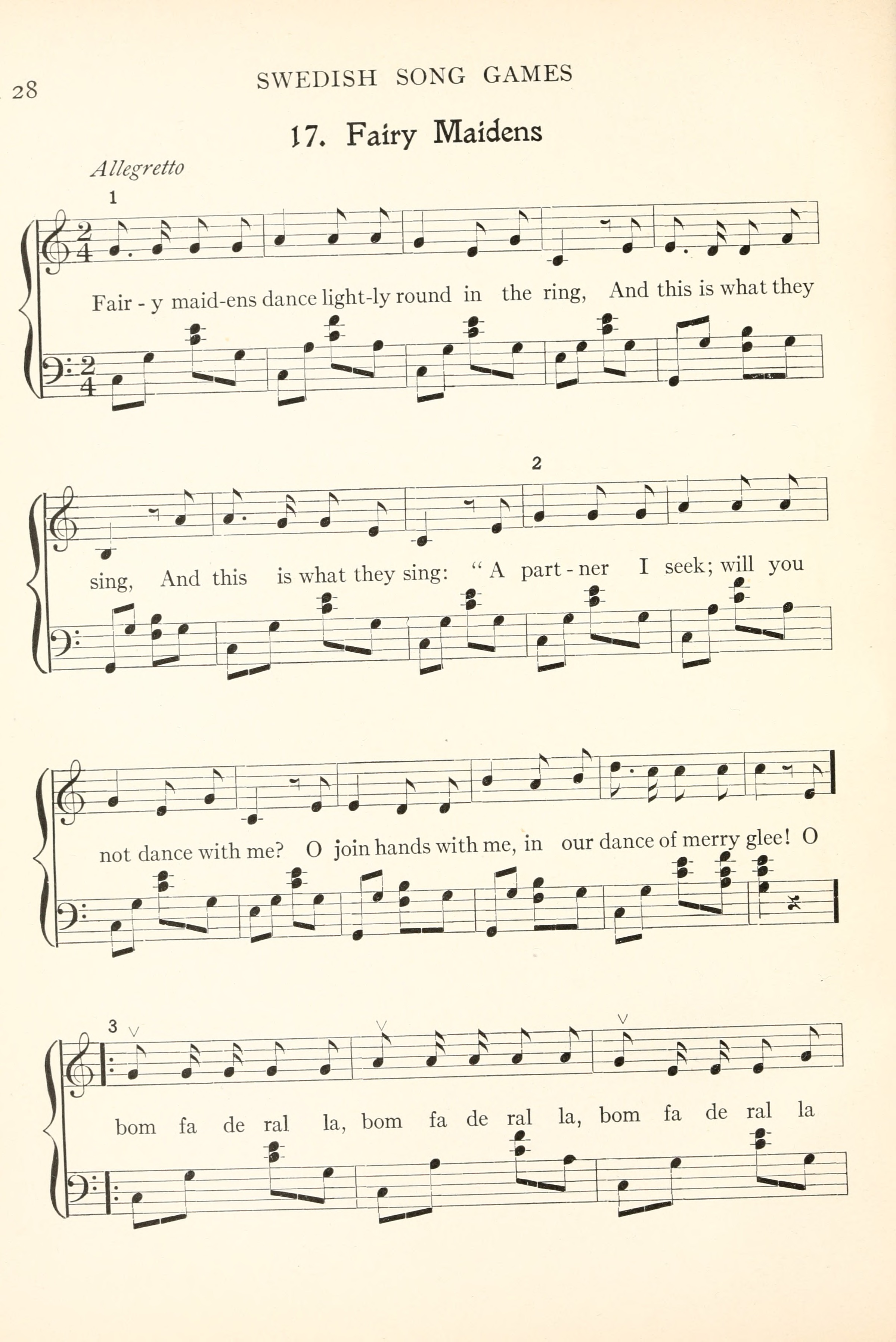 Fair - y maid-ens dance light-ly round in the ring, And this is what they