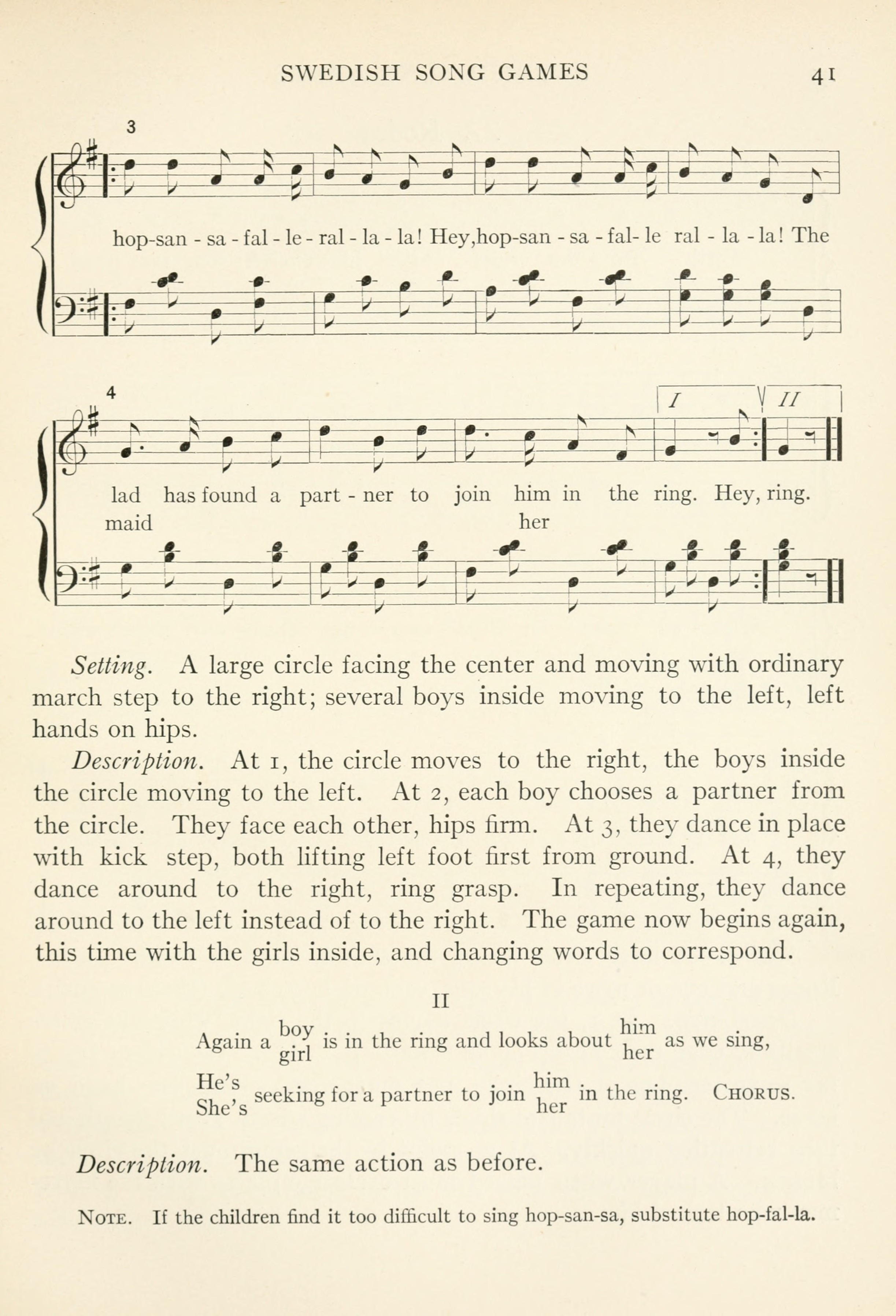 Note. If the children find it too difficult to sing hop-san-sa, substitute hop-fal-la.