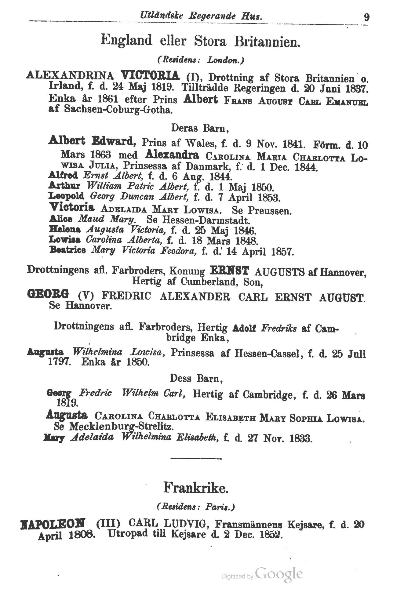 Full resolution (JPEG) - On this page / på denna sida - Utländske Regerande Hus - England eller Stora Britannien - Frankrike