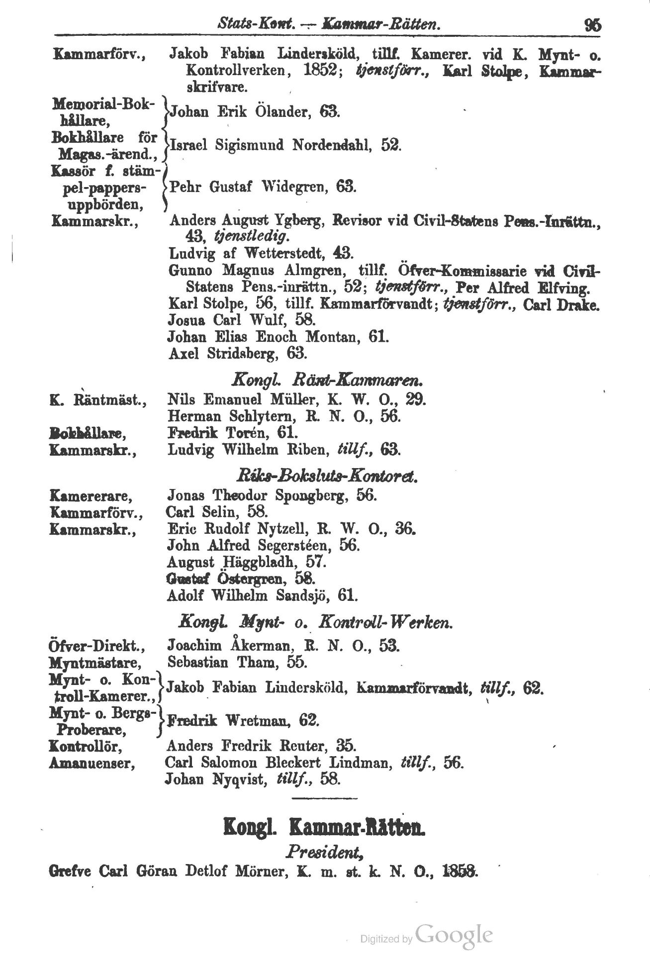 ^ta^-Kamerer }^°’> Lindersköld, Kammarförvandt, tillf., 62.