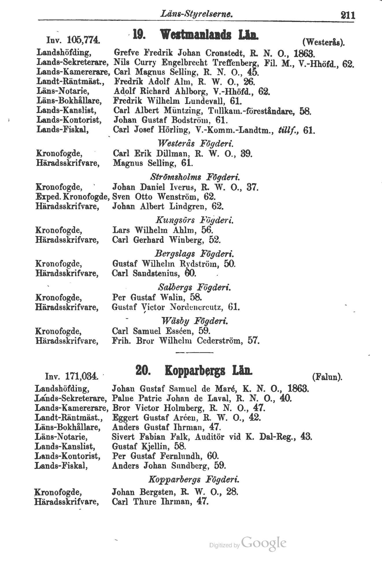 Full resolution (JPEG) - On this page / på denna sida - Svenska Kalendern - VI. Till Stats-Departementen hörande Stater och Korpser - 5) tillhörande K. Civil-Departementet - a) för den inre förvaltningen och politien - Kongl. Maj:ts Befallningshafvande med Landt-Staten (Läns-Styrelserne)