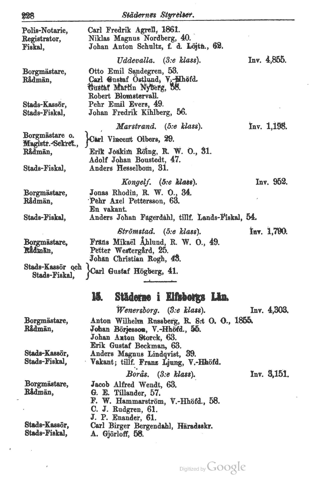 Full resolution (JPEG) - On this page / på denna sida - Svenska Kalendern - VI. Till Stats-Departementen hörande Stater och Korpser - 5) tillhörande K. Civil-Departementet - a) för den inre förvaltningen och politien - Städernes Styrelser, Werk och särskilde Tjenstemän