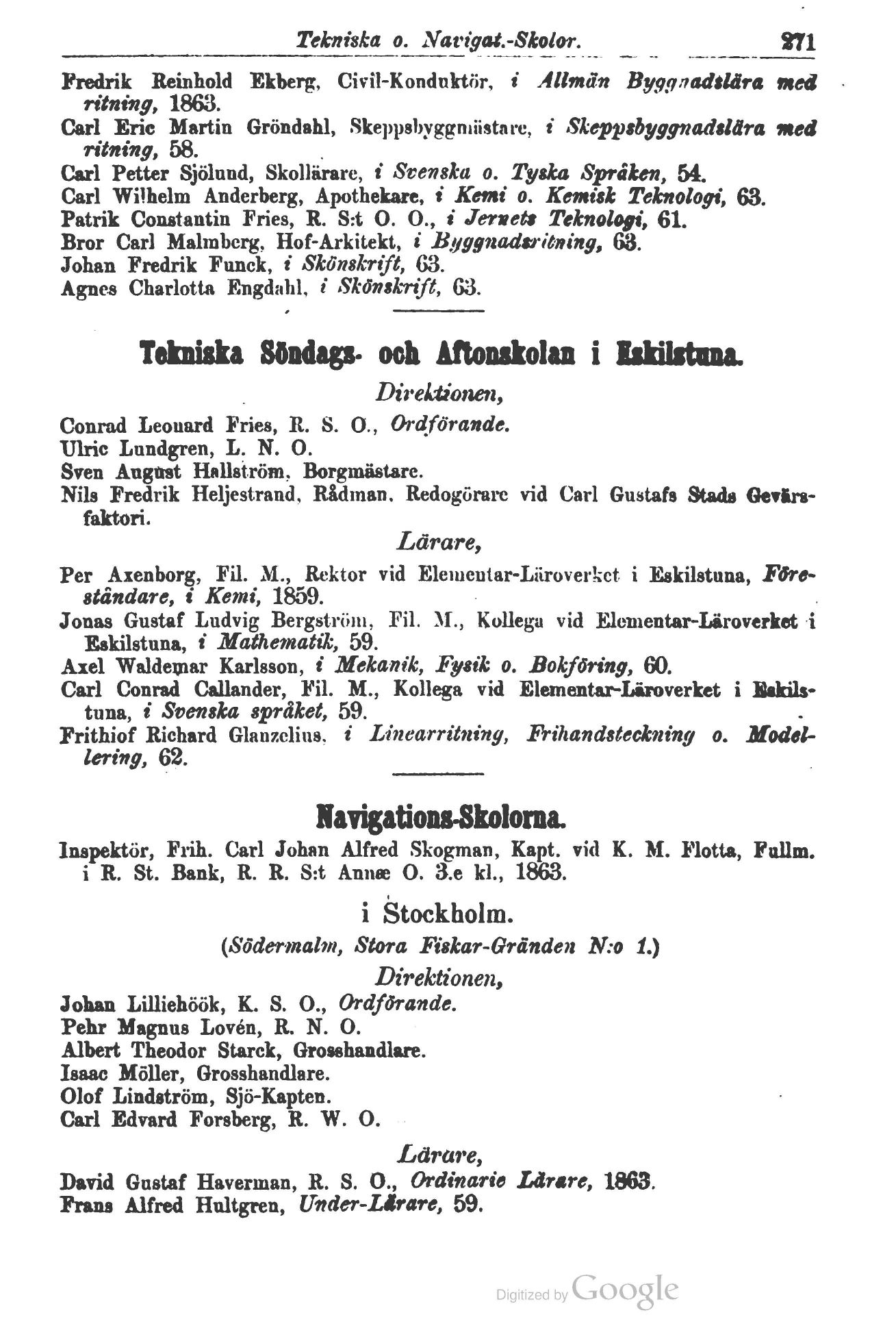 Full resolution (JPEG) - On this page / på denna sida - Svenska Kalendern - VI. Till Stats-Departementen hörande Stater och Korpser - 5) tillhörande K. Civil-Departementet - d) Undervisnings-anstalter för näringarne - Den af Svenska Slöjdföreningen inrättade Söndags- och Aftonskola i Stockholm - Tekniska Söndags- och Aftonskolan i Eskilstuna - Navigations-Skolorna