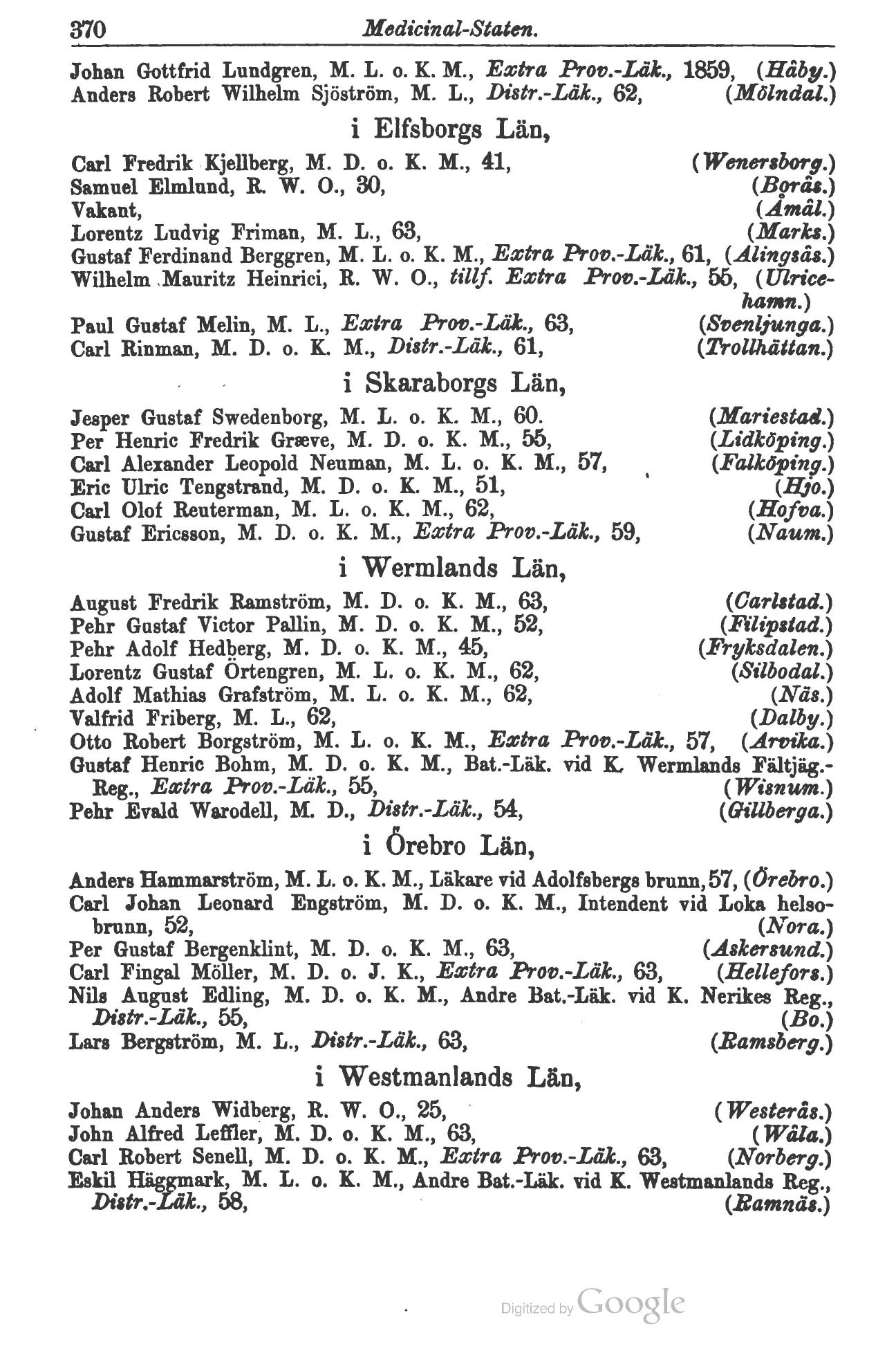 Full resolution (JPEG) - On this page / på denna sida - Svenska Kalendern - VI. Till Stats-Departementen hörande Stater och Korpser - 7) tillhörande K. Ecklesiastik-Departementet - c) Medicinal-Staten - Provinsial- och Distrikts-Läkare