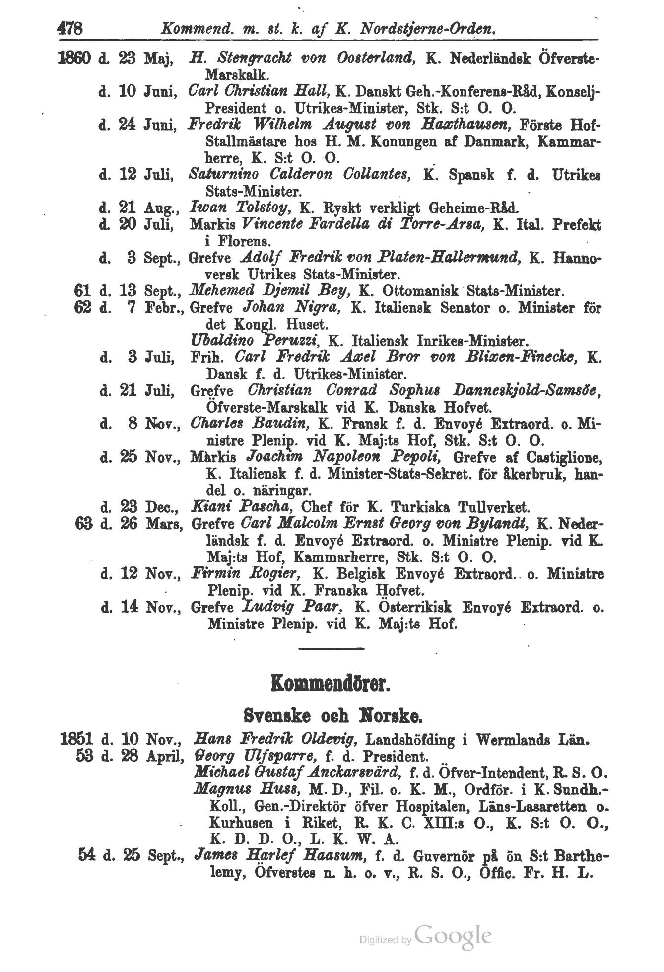 Full resolution (JPEG) - On this page / på denna sida - Svenska Kalendern - X. De Kongl. Svenska Riddare-Ordnarne - 3) Kongl. Nordstjerne-Orden - Kommendörer med stora korset - Kommendörer