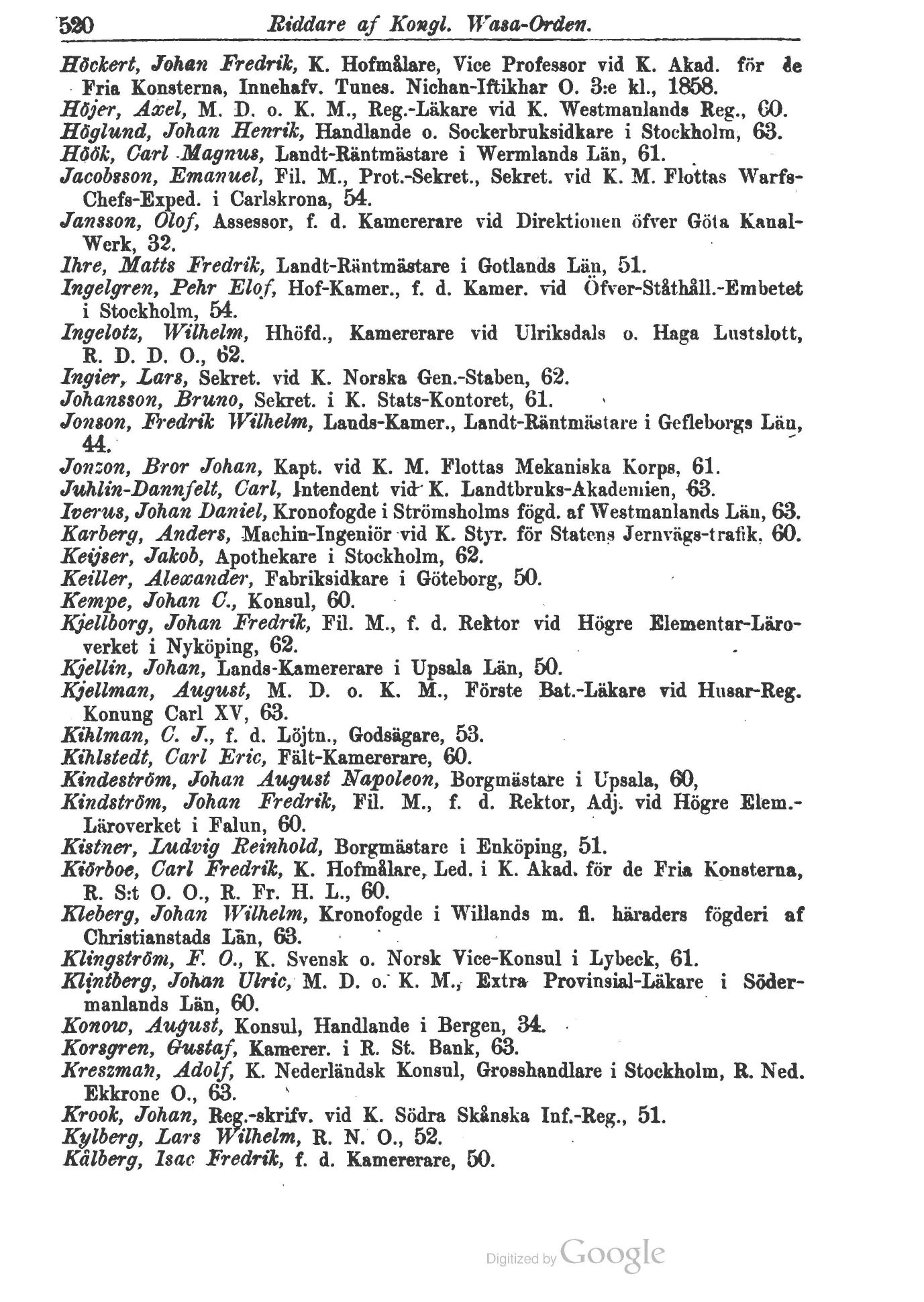Klingström, F. O., K. Svensk o. Norsk Vice-Konsnl i Lybeck, 61.