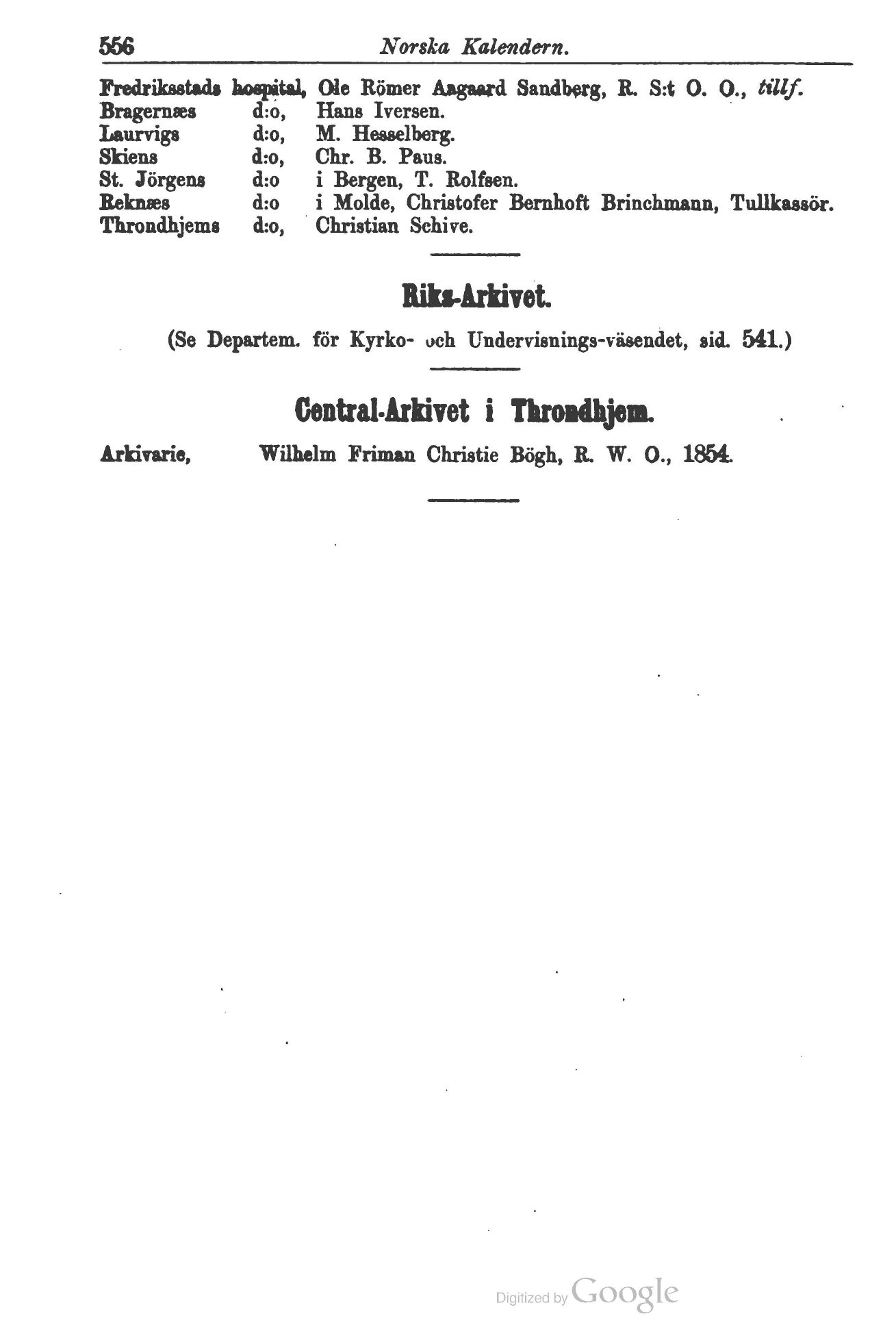 Full resolution (JPEG) - On this page / på denna sida - Norska Kalendern - V. Under Departementen lydande Embetsmän och Inrättningar - 1) under Depart. för Kyrko- och Undervisnings-väsendet - Hospitals-Föreståndare - Riks-Arkivet - Central-Arkivet i Throndhjem