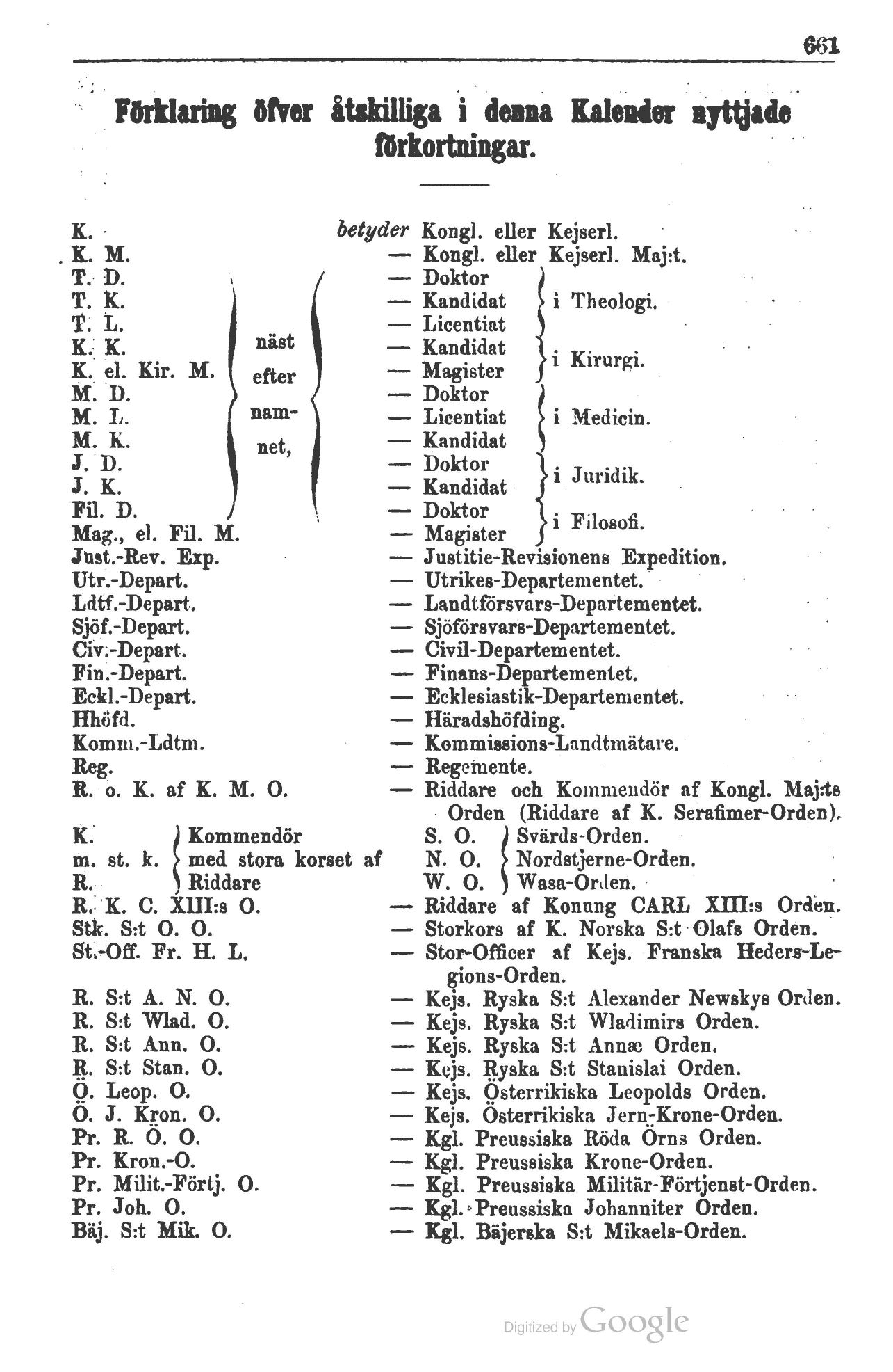 Full resolution (JPEG) - On this page / på denna sida - Förklaring öfver åtskilliga i denna Kalender nyttjade förkortningar
