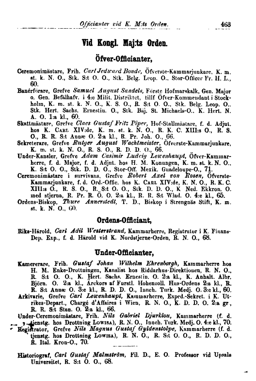 t^enstg. hos Drottning Lo wisa), R. N. O., Innch. Turk. Medj. O. 4:e kl., 70.