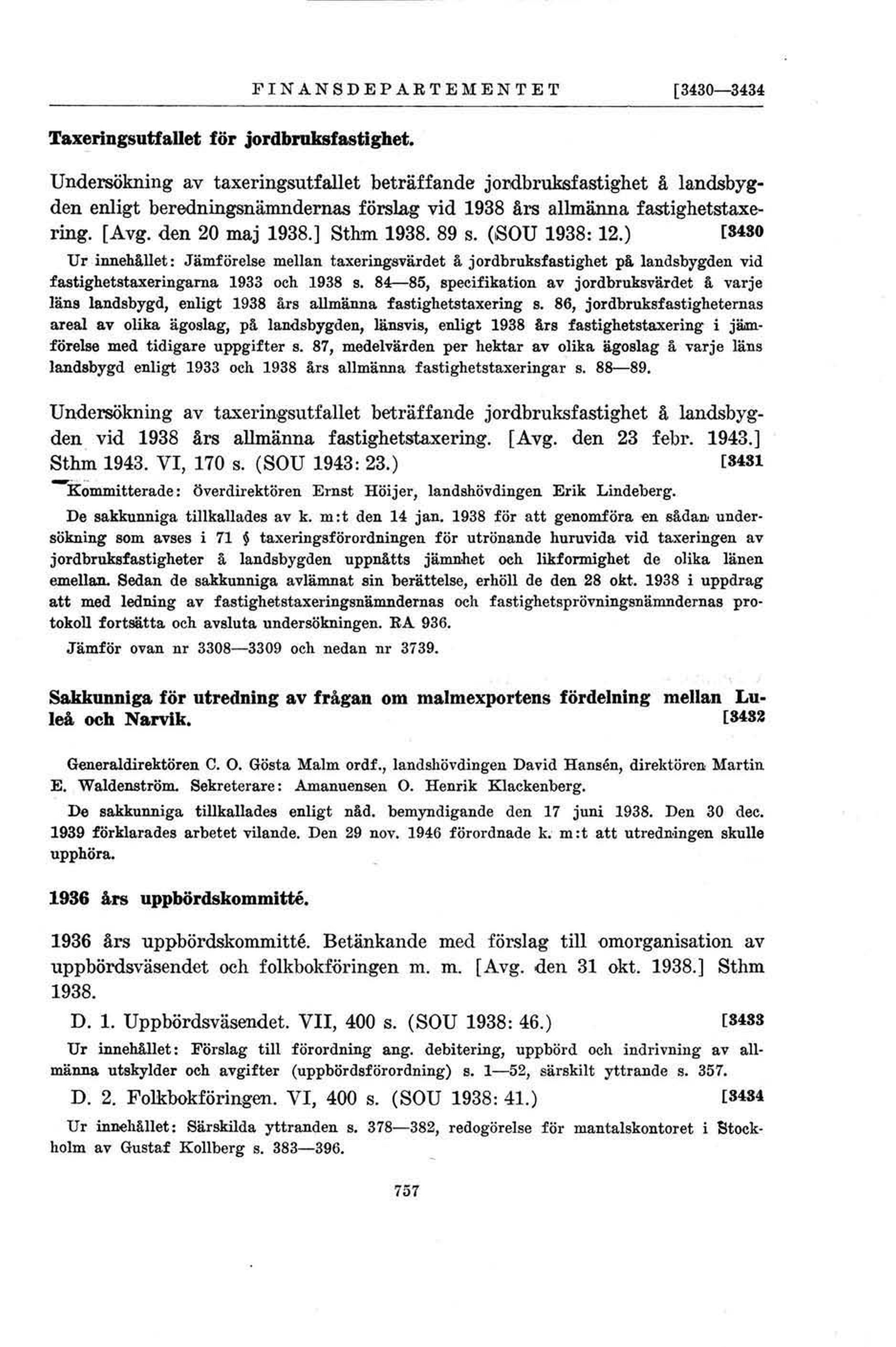 fastighetstaxering. [Avg. den 20 maj 1938.] Sthm 1938. 89 s. (SOU 1938: 12.) [»430