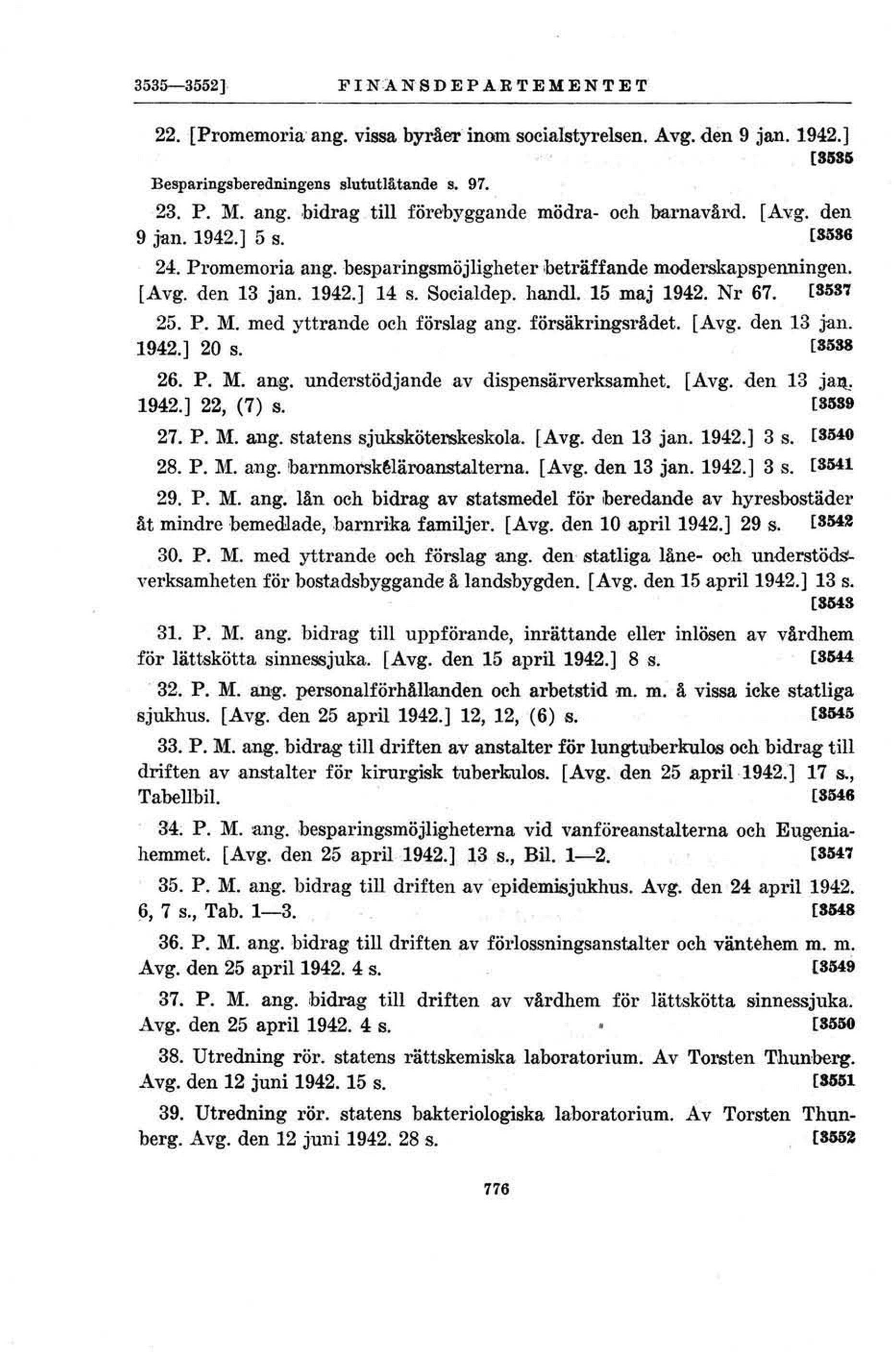 sjukhus. [Avg. den 25 april 1942.] 12, 12, (6) s. [3545