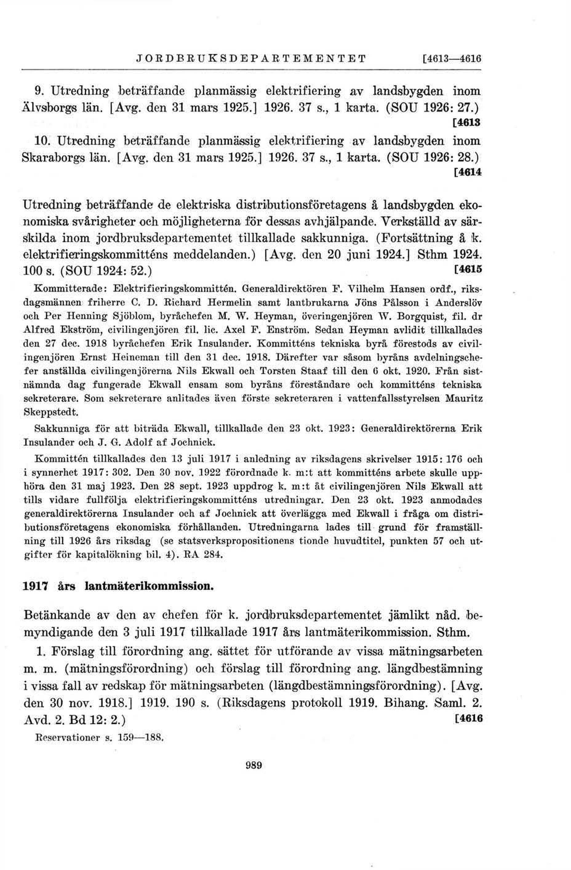 Kommitterede: Elektrifieringskommittén. Generaldirektören F. Vilhelm Hansen ordf.,