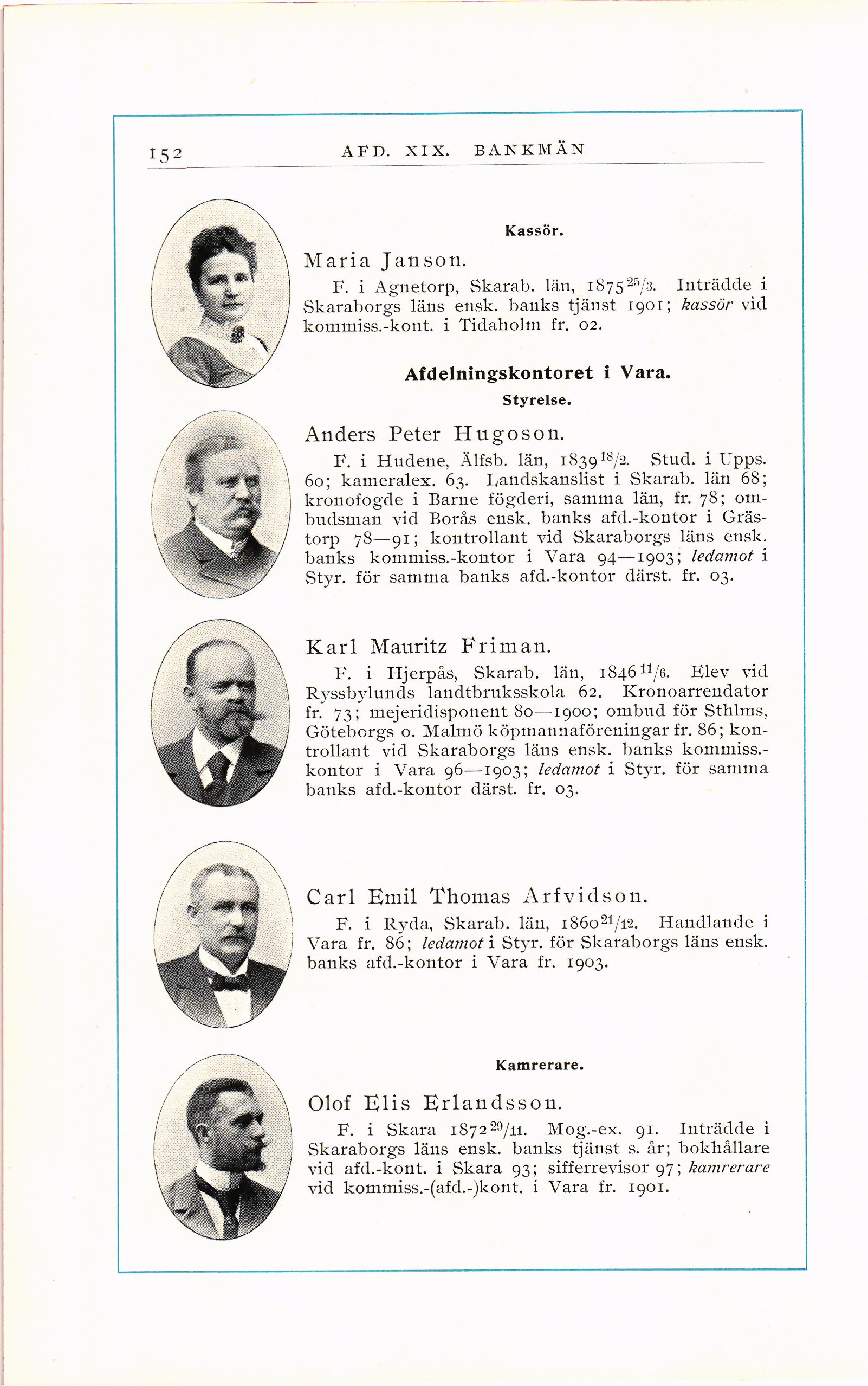 banks koinmiss.-kontor i Vara 94—1903; ledamot i