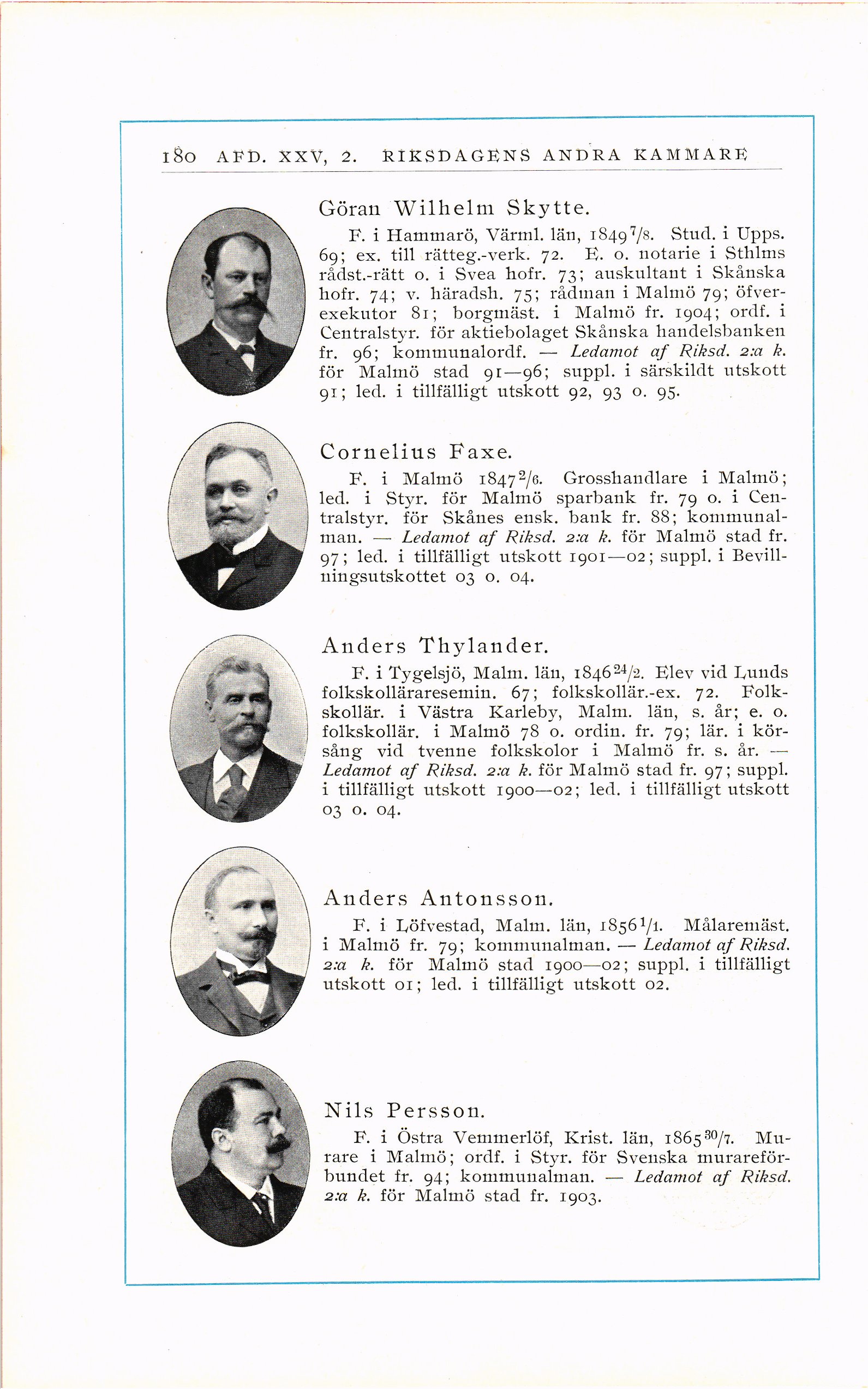 Ledamot af Riksd. 2:a k. för Malmö stad fr. 97; suppl,