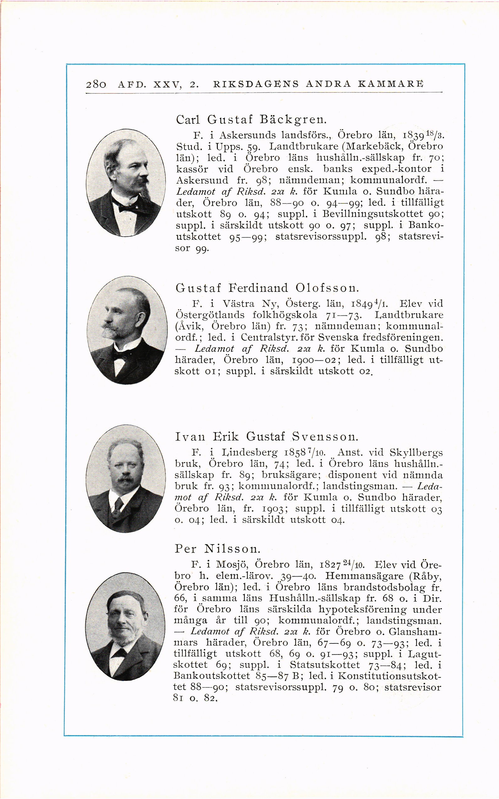 — Ledamot af Riksd. 2:a k. för Örebro o.