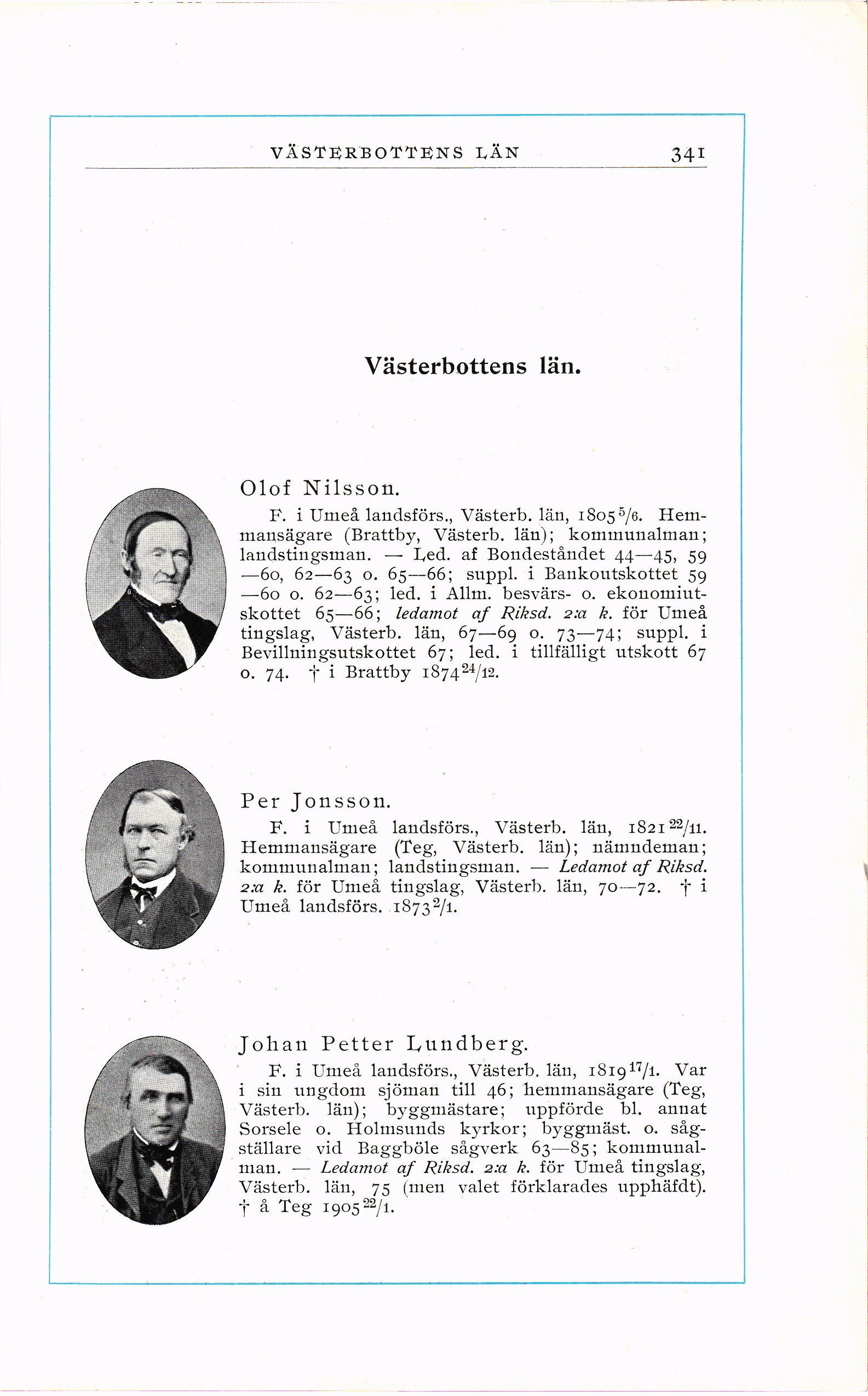 kommunalman. — Ledamot af Riksd. 2:a k. för Umeå tingslag,