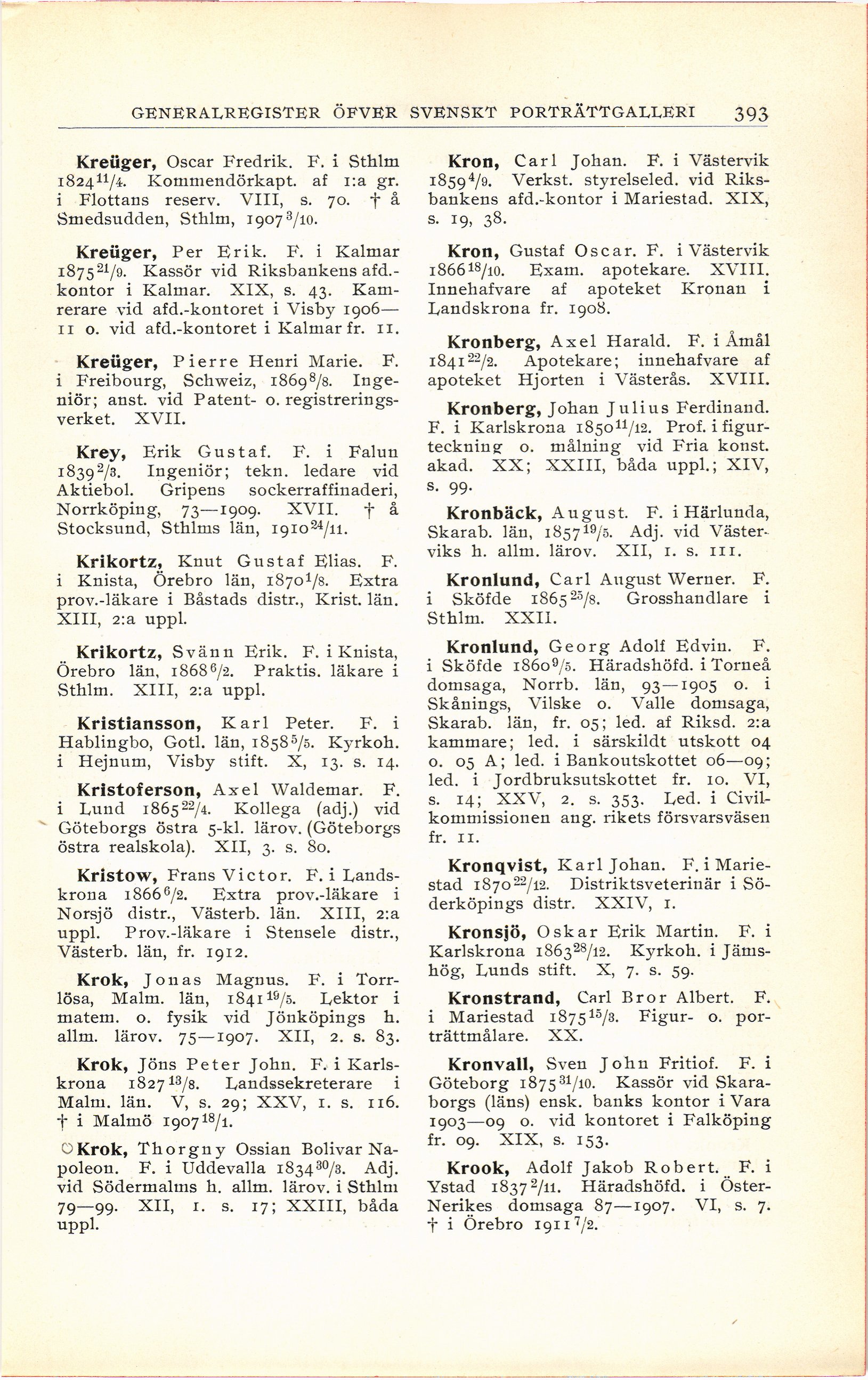 Kreüger, Oscar Fredrik. F. i Sthlm