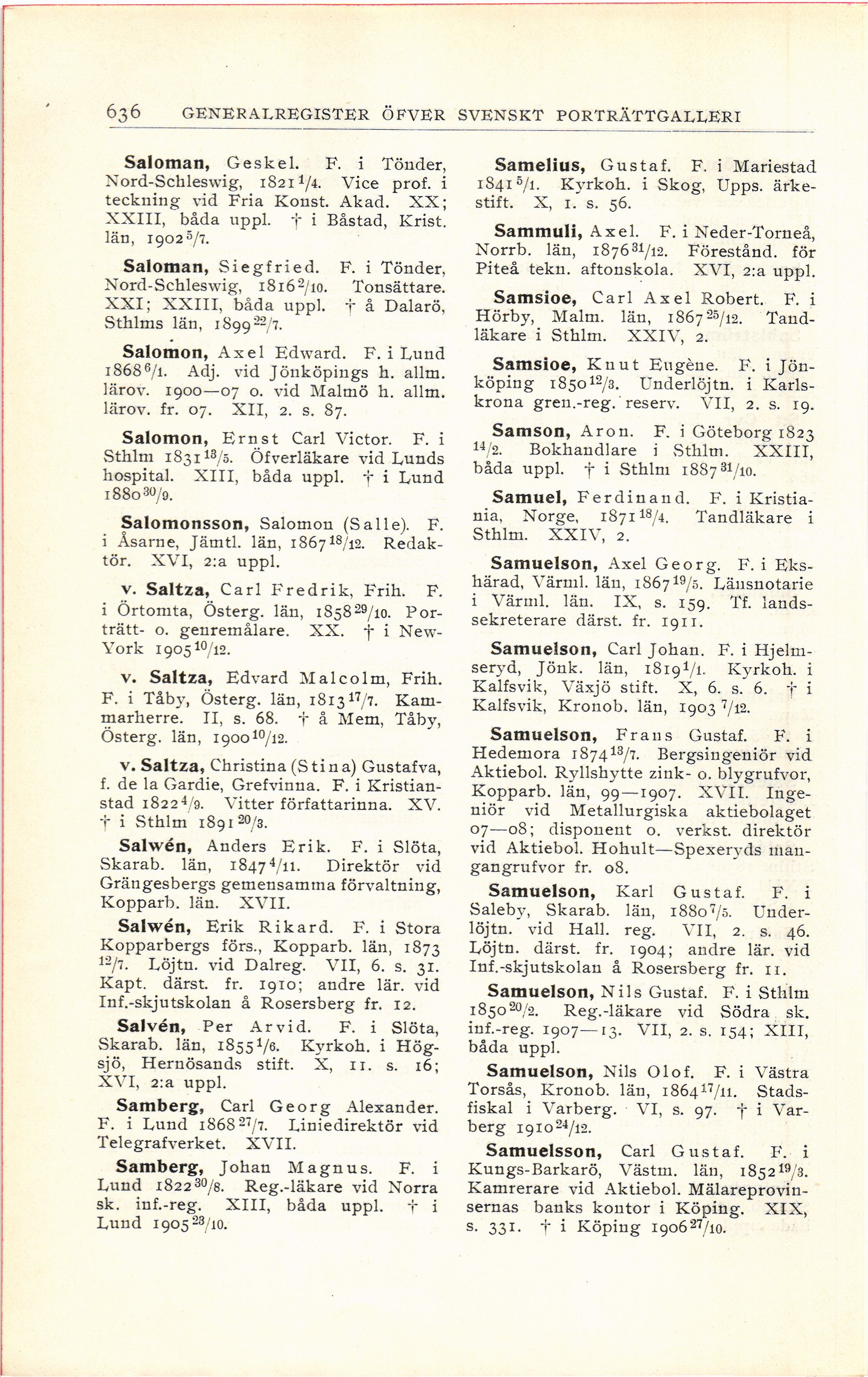 636 gener alregister öfver svenskt porträttgalleri