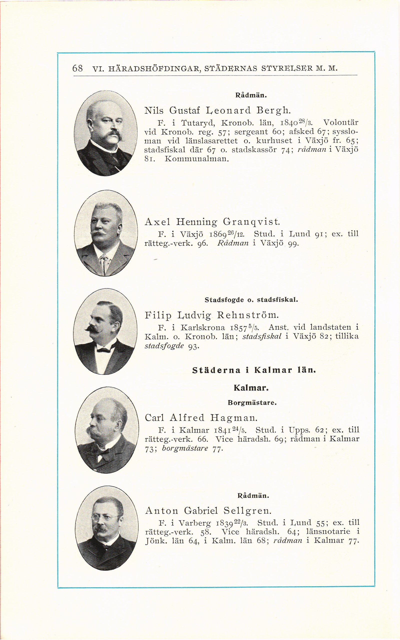 68 VI. HÄRADSHÖVDINGAR, STÄDERNAS STYRELSER M. M.