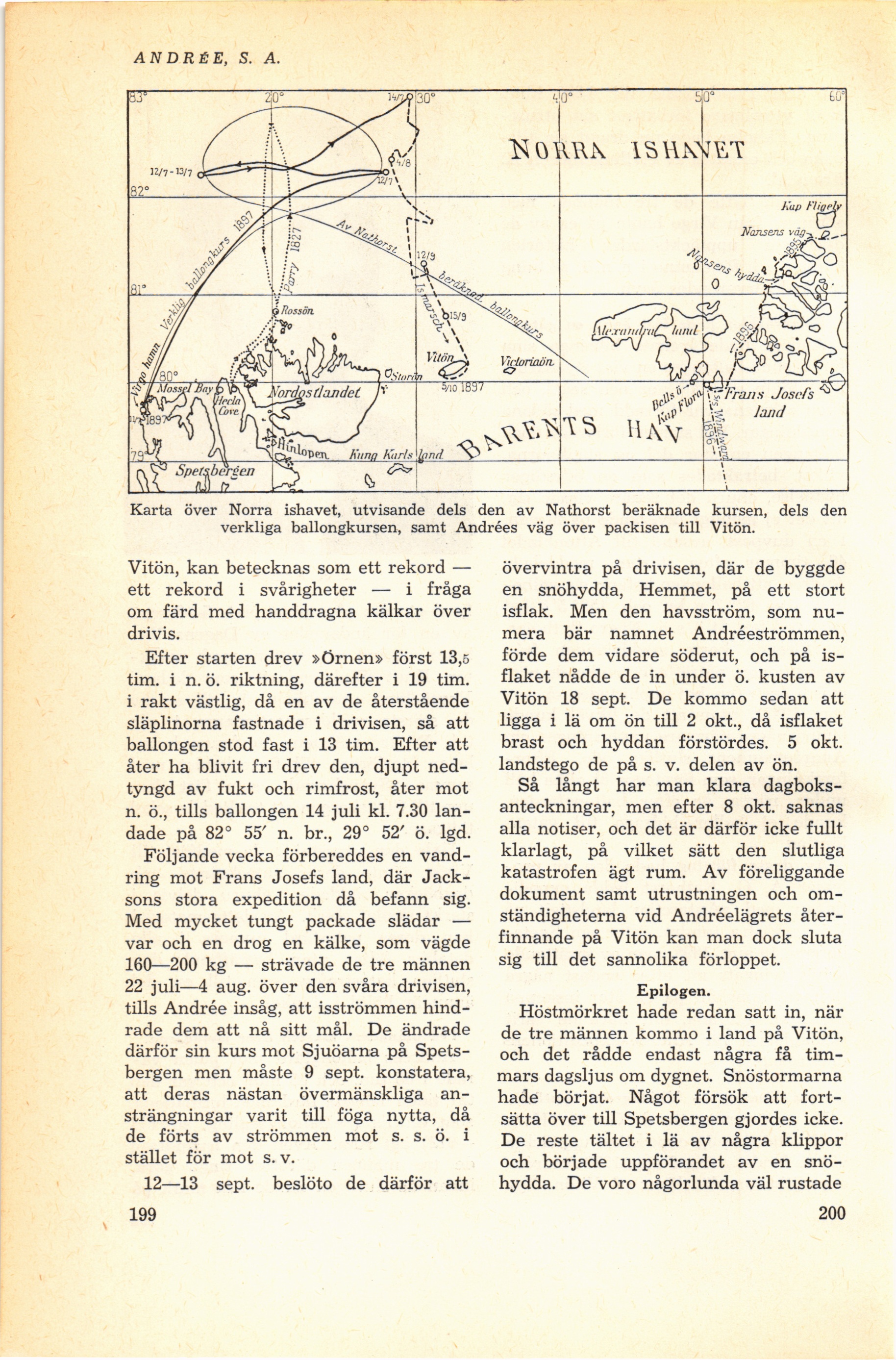 verkliga ballongkursen, samt Andrées väg över packisen till Vitön.