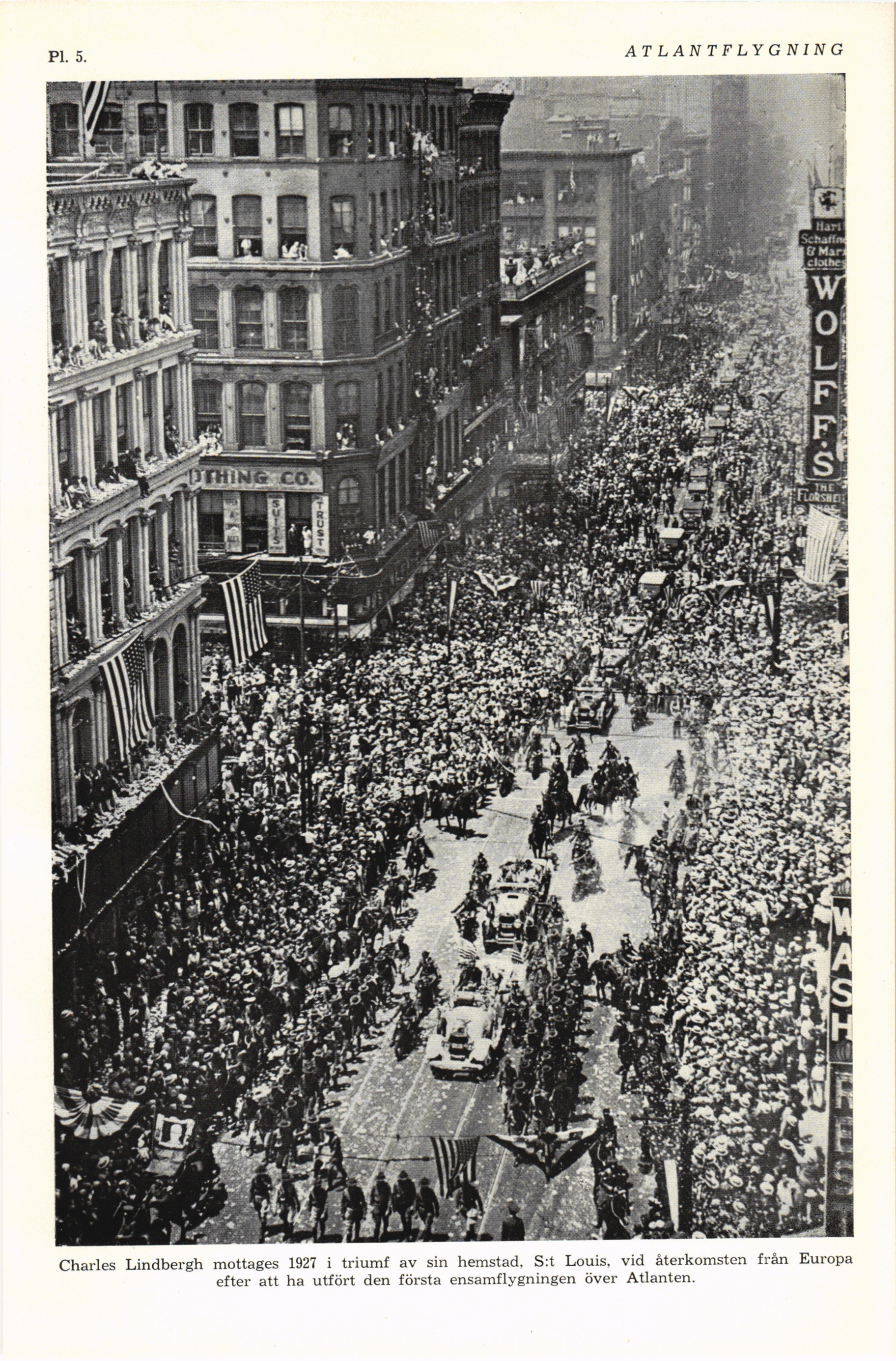 Charles Lindbergh mottages 1927 i triumf av sin hemstad. S:t Louis, vid återkomsten från Europa