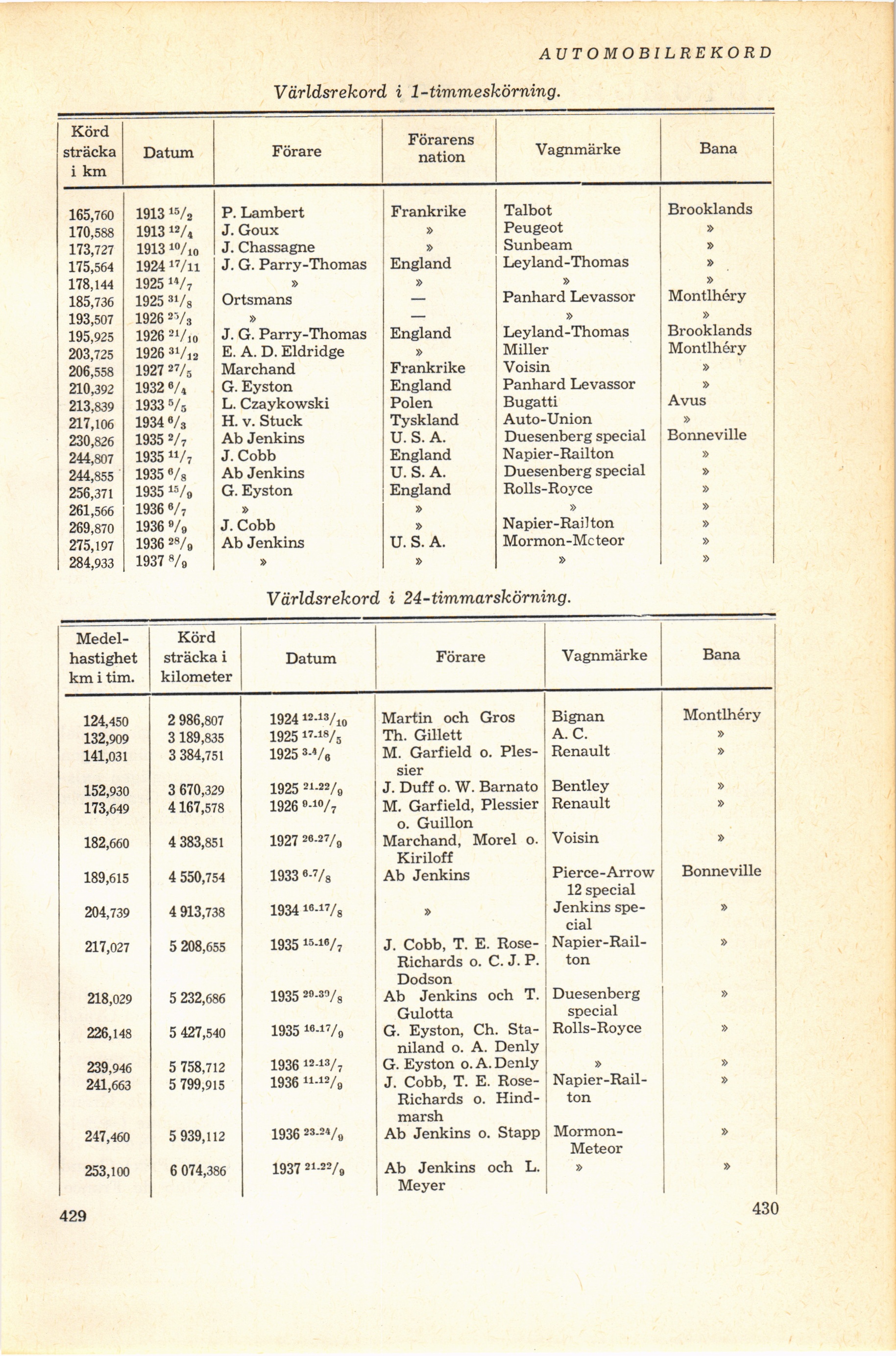 Full resolution (JPEG) - On this page / på denna sida - Automobilrekord, av civilingenjör Folke Mannerstedt - Rekordtabeller