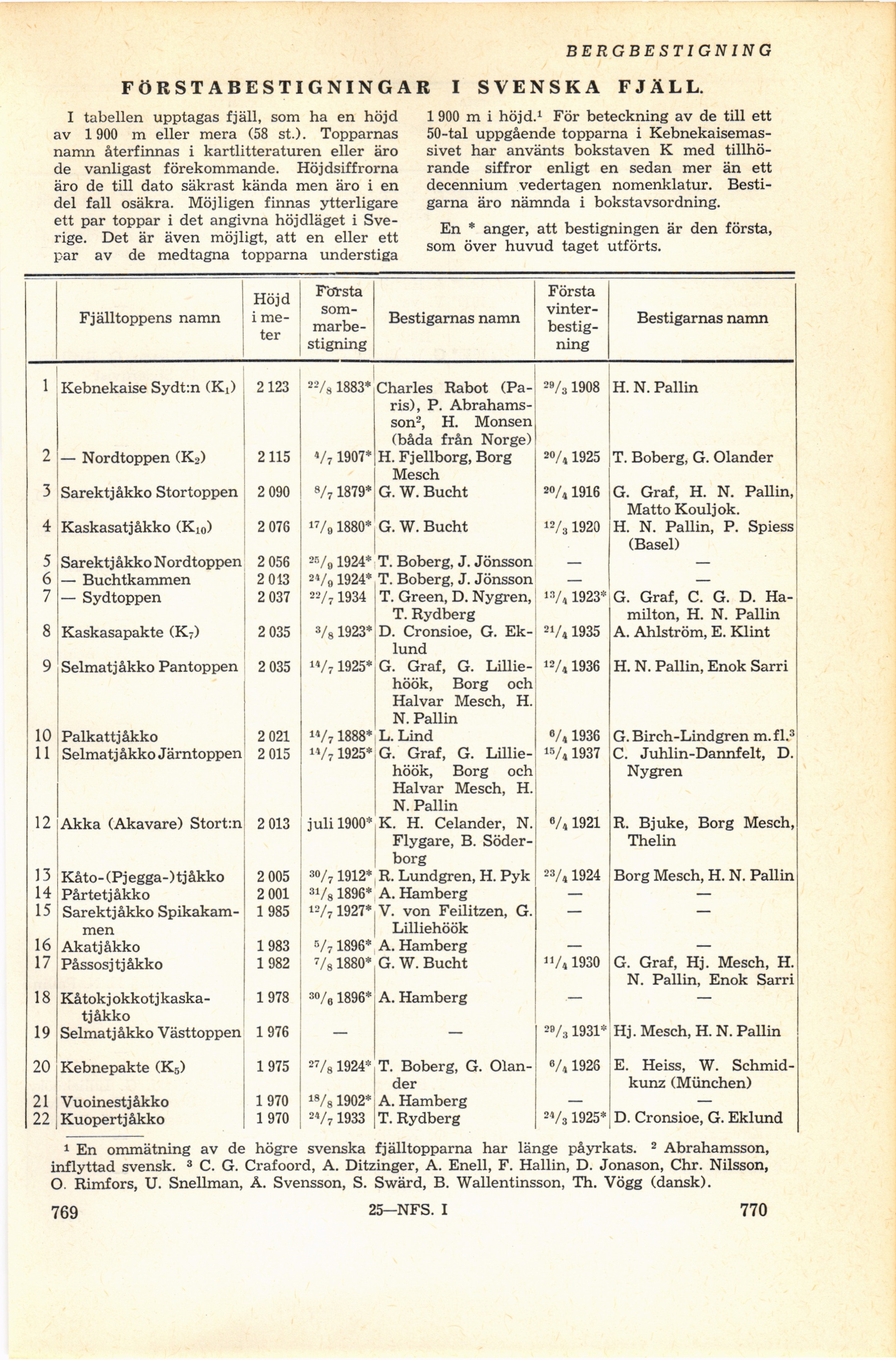 FÖRSTABESTIGNINGAR I SVENSKA FJÄLL.