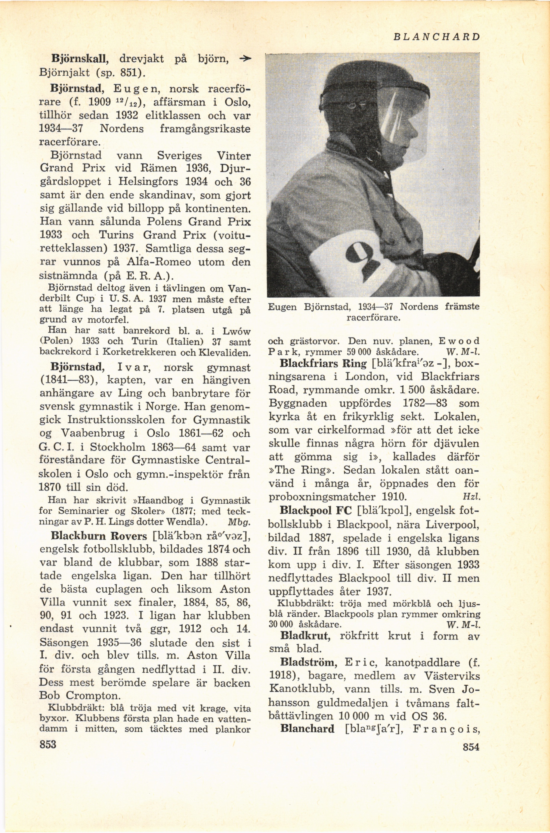 Full resolution (JPEG) - On this page / på denna sida - Björnskall - Björnstad, Eugen - Björnstad, Ivar - Blackburn Rovers - Blackfriars Ring - Blackpool FC - Bladkrut - Bladström, Eric - Blanchard, François