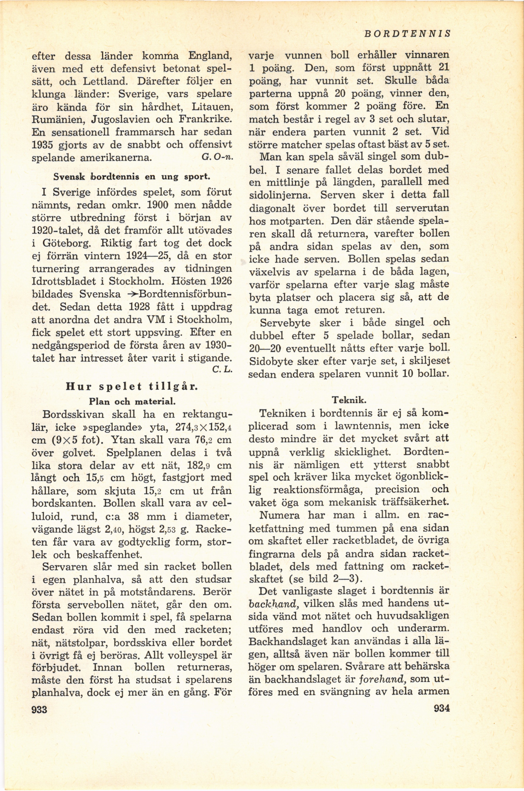 Full resolution (JPEG) - On this page / på denna sida - Bordtennis - Historik, av redaktör C. Linde och fil. mag. G. Ollén - Hur spelet tillgår, av C. Linde och G. Ollén