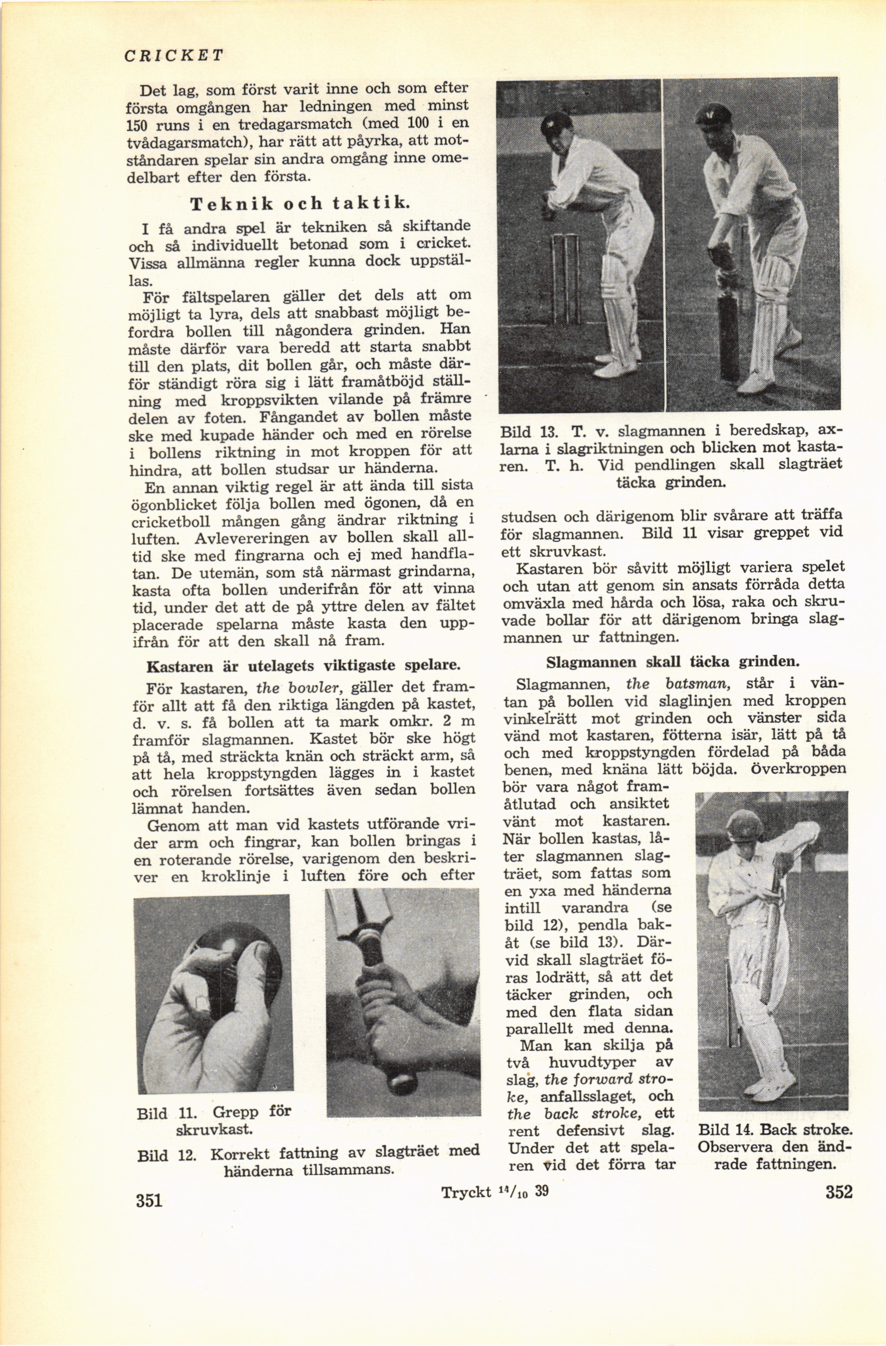 för slagmannen. Bild 11 visar greppet vid