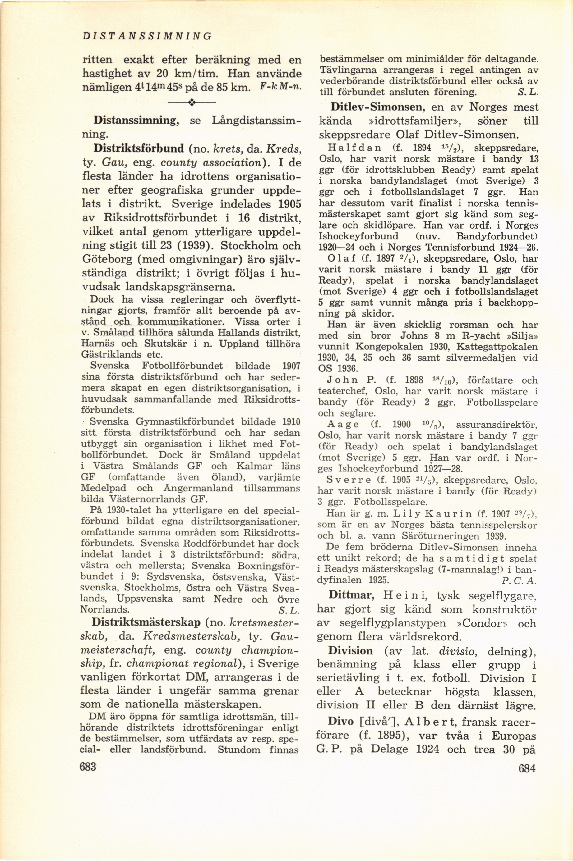 Full resolution (JPEG) - On this page / på denna sida - Distansritt - Märkligare distansritter under 1800- och 1900-talen, av ryttmästare Frank Martin - Distanssimning, se Långdistanssimning - Distriktsförbund - Distriktsmästerskap - Ditlev-Simonsen - Dittmar, Heini - Division - Divo, Albert